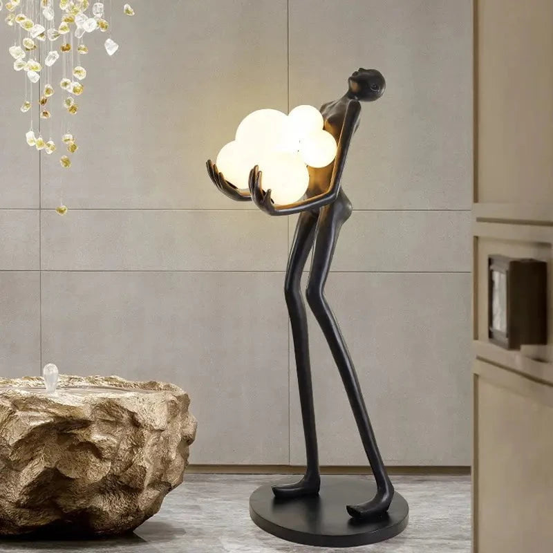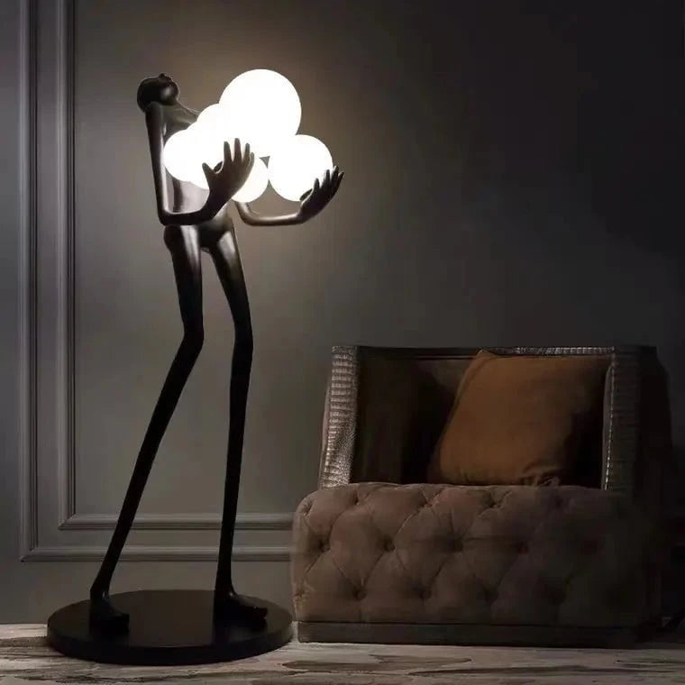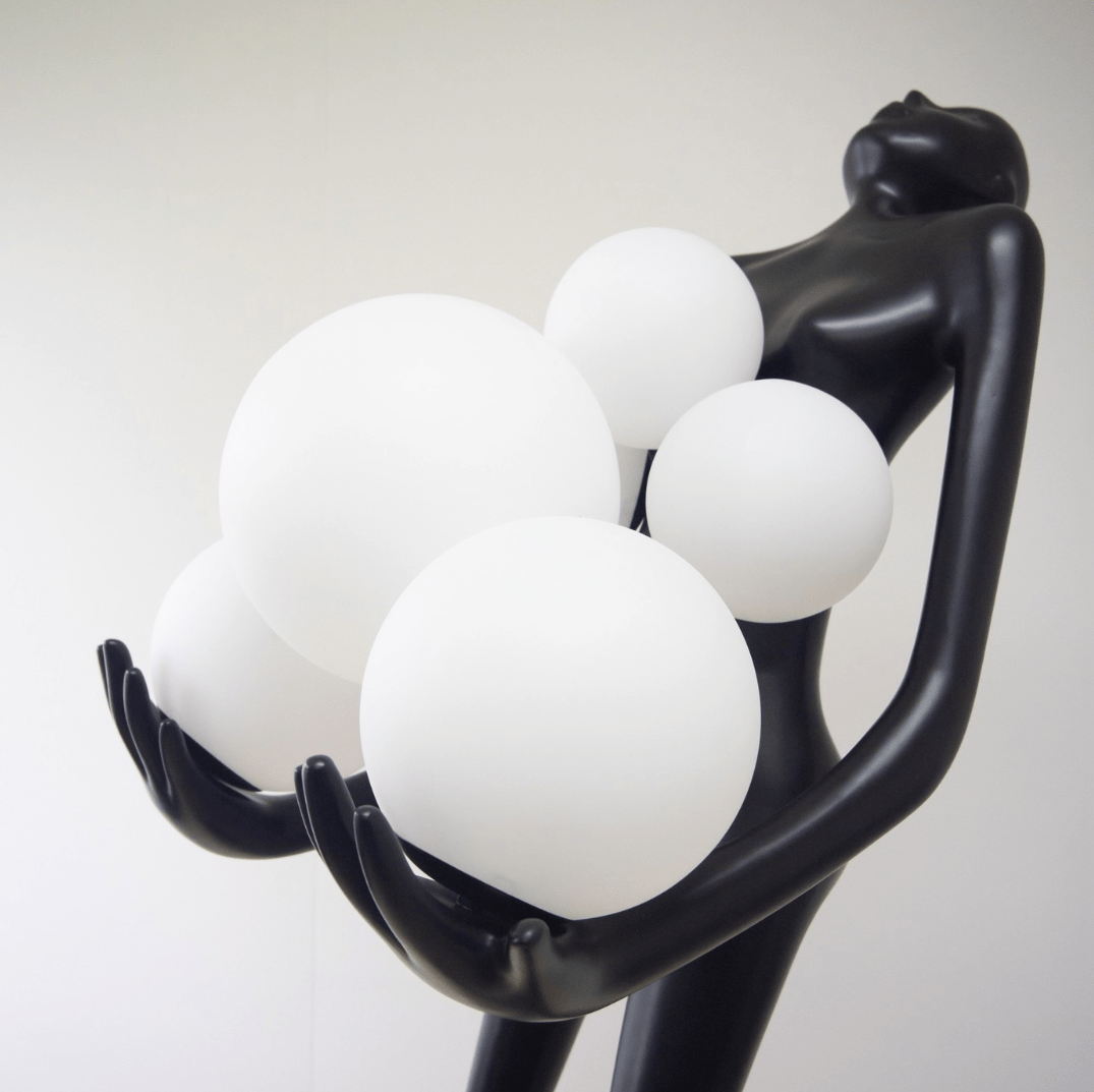 The Body Sculpture Lamp made of Resin in black color is a freestanding Floor Lamp. The lamp features a body sculpted out of resin 1800mm Tall, which is a durable and versatile material that can be molded into various shapes and designs. The body of the lamp is black in color, giving it a sleek and modern look.