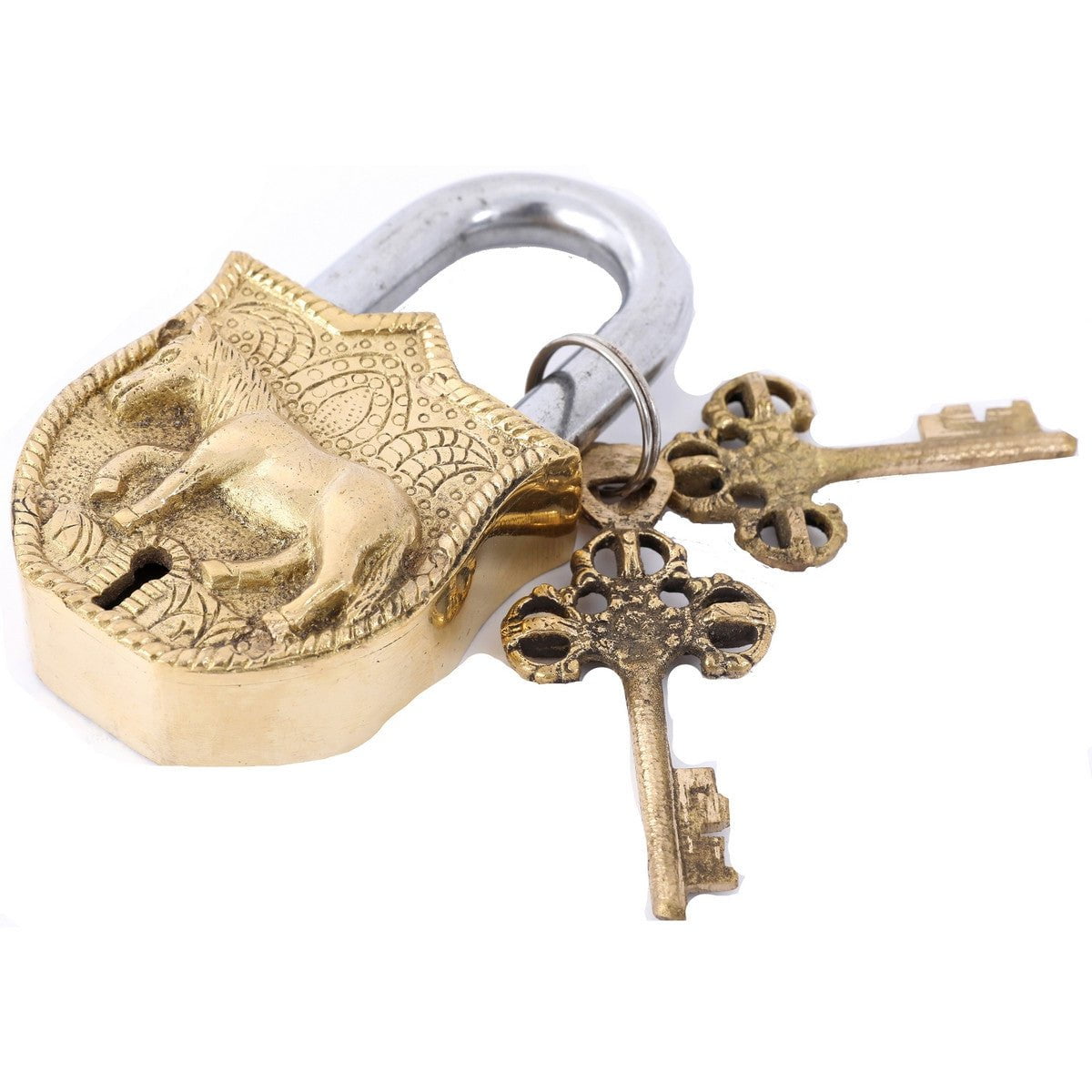 Secure your valuables with this classic brass horse lock! Crafted with superior-quality brass and detailed artistry, this lock is not only secure, but also a stylish addition to any décor. Keep your items safe with this timeless piece of hardware.