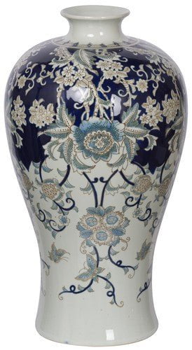 Intricately detailed and finished in a gorgeous range of blues and golds, the Bryn porcelain urn stands as a piece of artwork all its own. This piece is crafted from sleek porcelain in a high gloss glaze, its durability surpassed only by its beauty.
