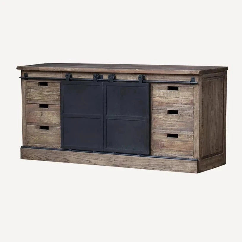 Railway Farmhouse Buffet Table with Metal Sliding Doors