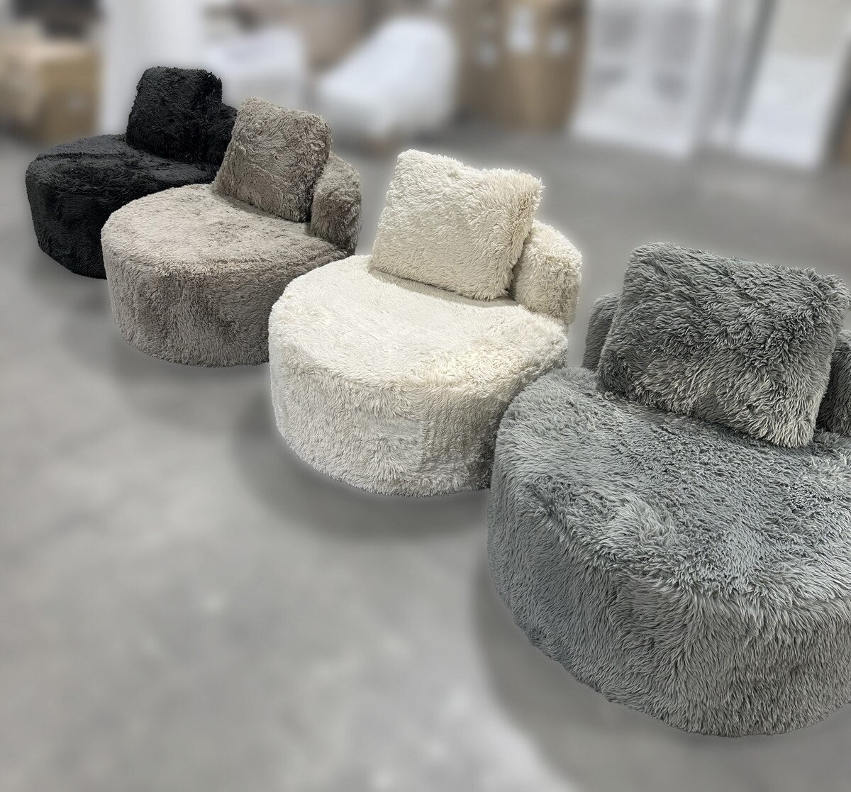 Make a bold style statement with the Cabana Round Accent Chair in Graphite Faux Sheepskin. Featuring a modern rounded silhouette and ultra-soft faux sheepskin upholstery, this chair combines contemporary design with irresistible comfort.