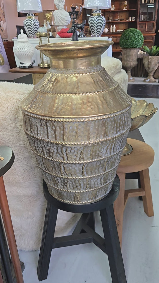 Calypso Hand Hammered Metal Urn - Gold