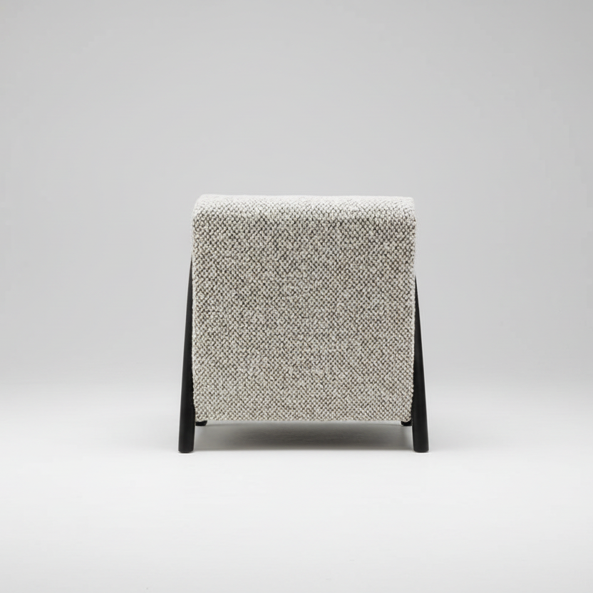 Bold Palette: The deep black finish on the oak frame creates a stunning contrast against the flecked upholstery, making it a versatile anchor for monochromatic or modern industrial interiors.