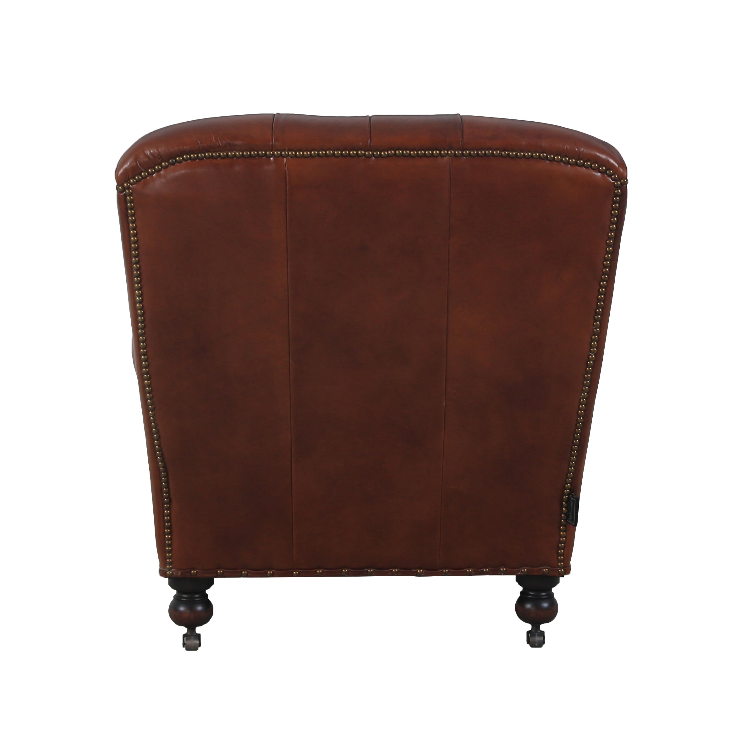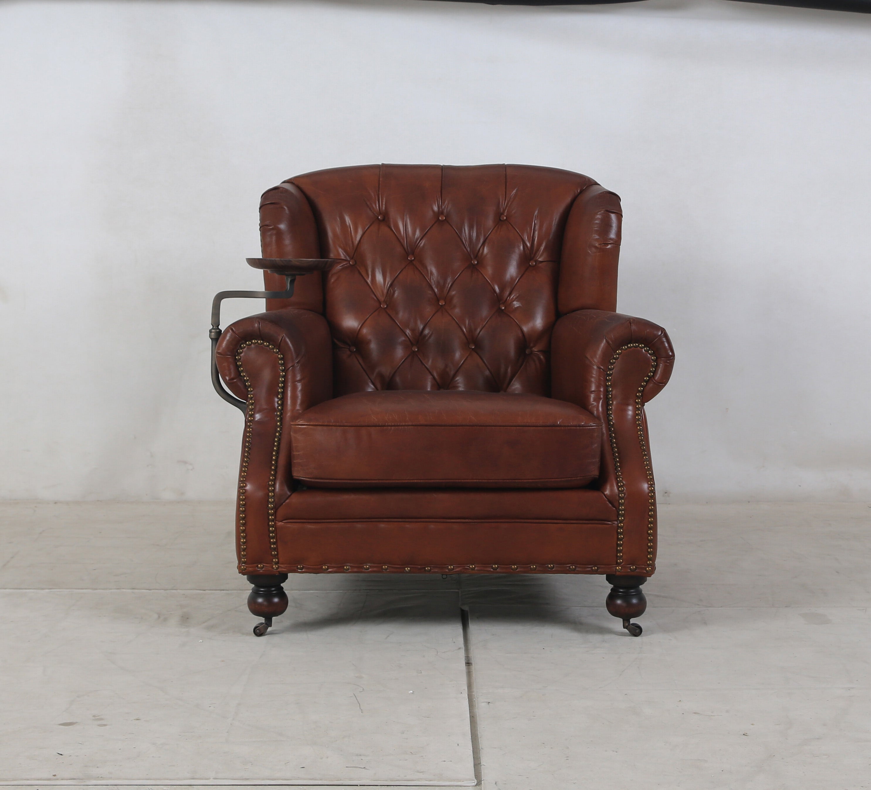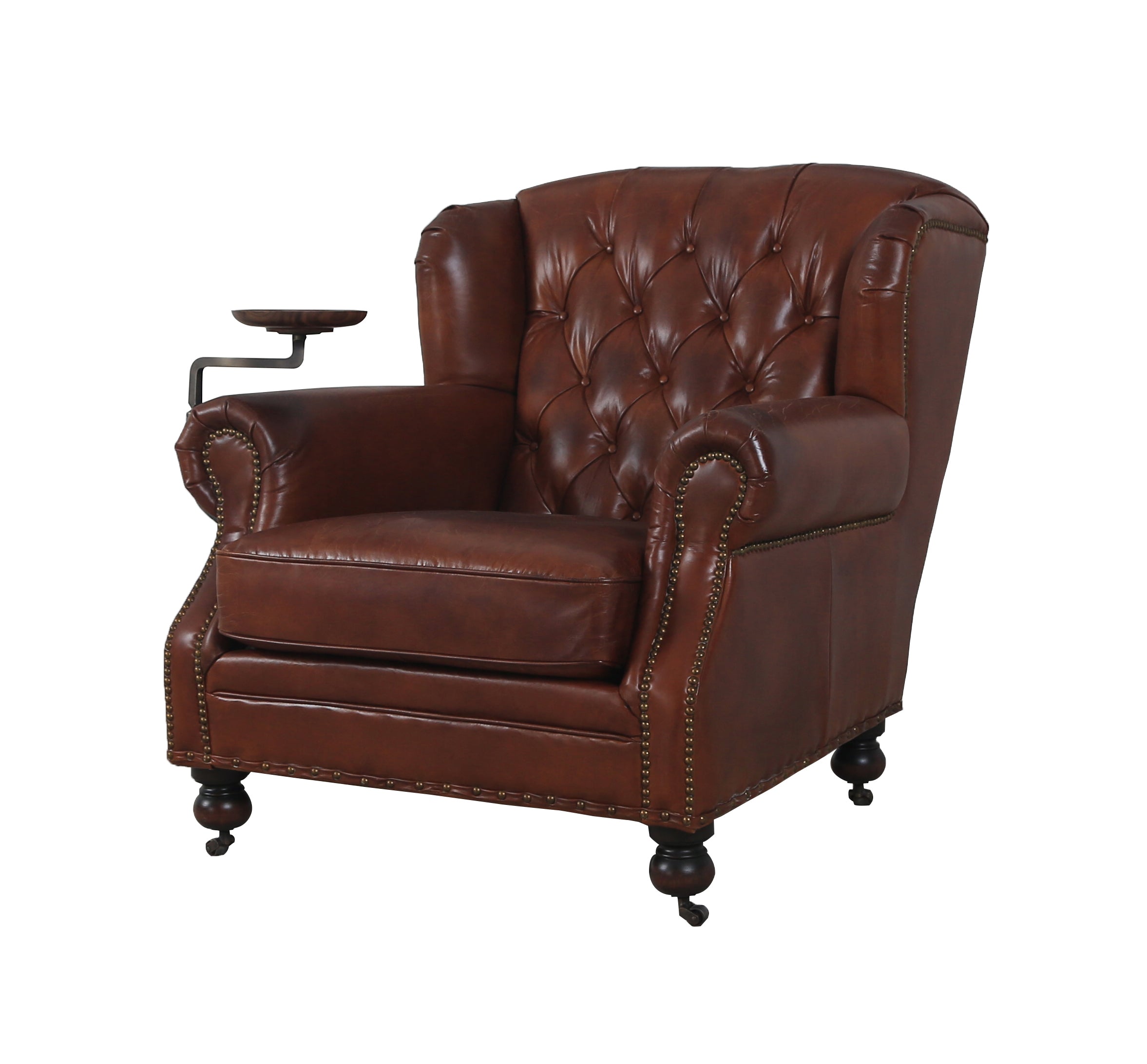 Indulge in luxury and comfort with our top-of-the-line Button Backed Armchair. Crafted from the finest full grain leather, this armchair exudes a timeless style that will elevate any lounge, study, or living area. Its vintage cigar color adds warmth and sophistication to any home. Complete with a built-in cup holder, this armchair lets you relax and enjoy your favorite drinks in style.