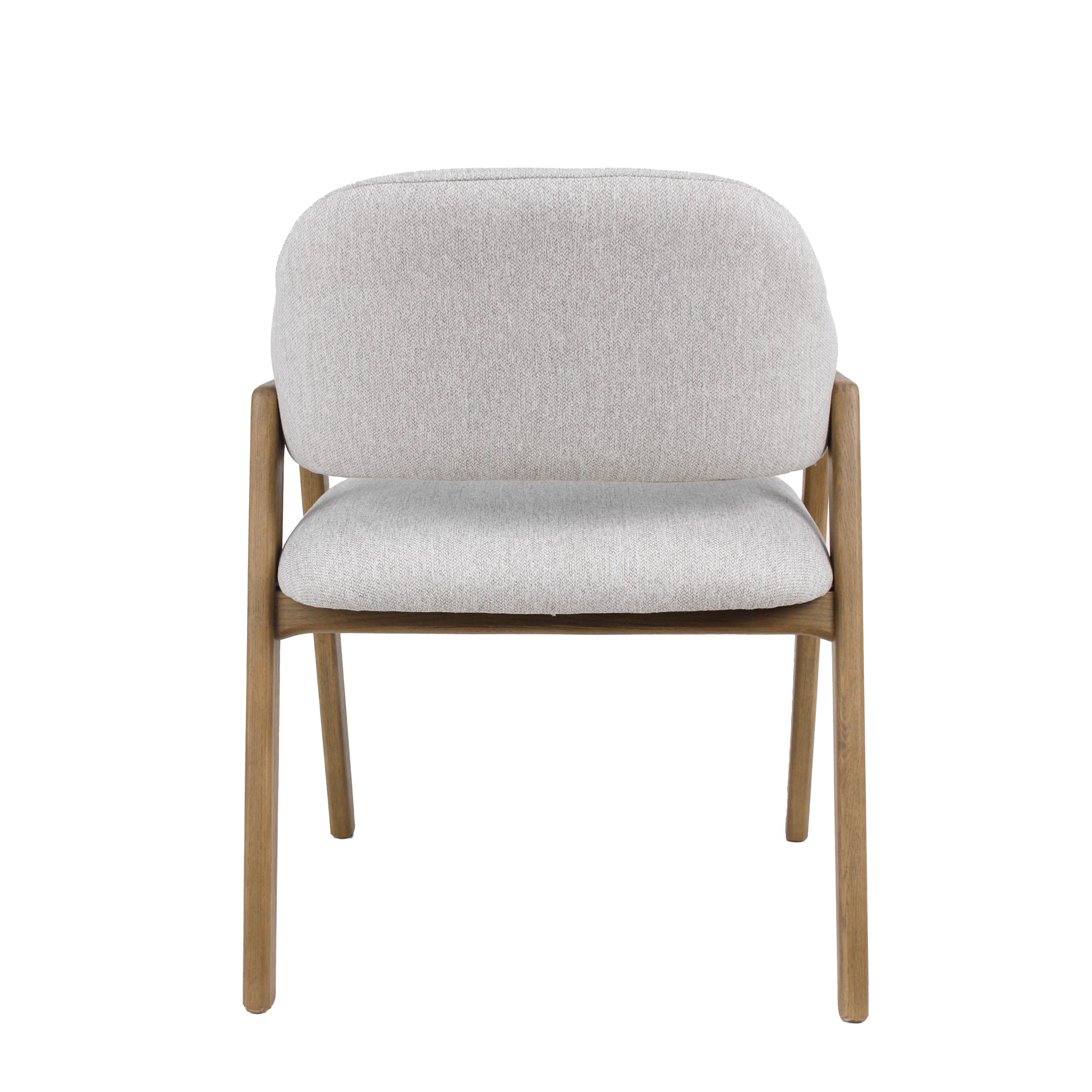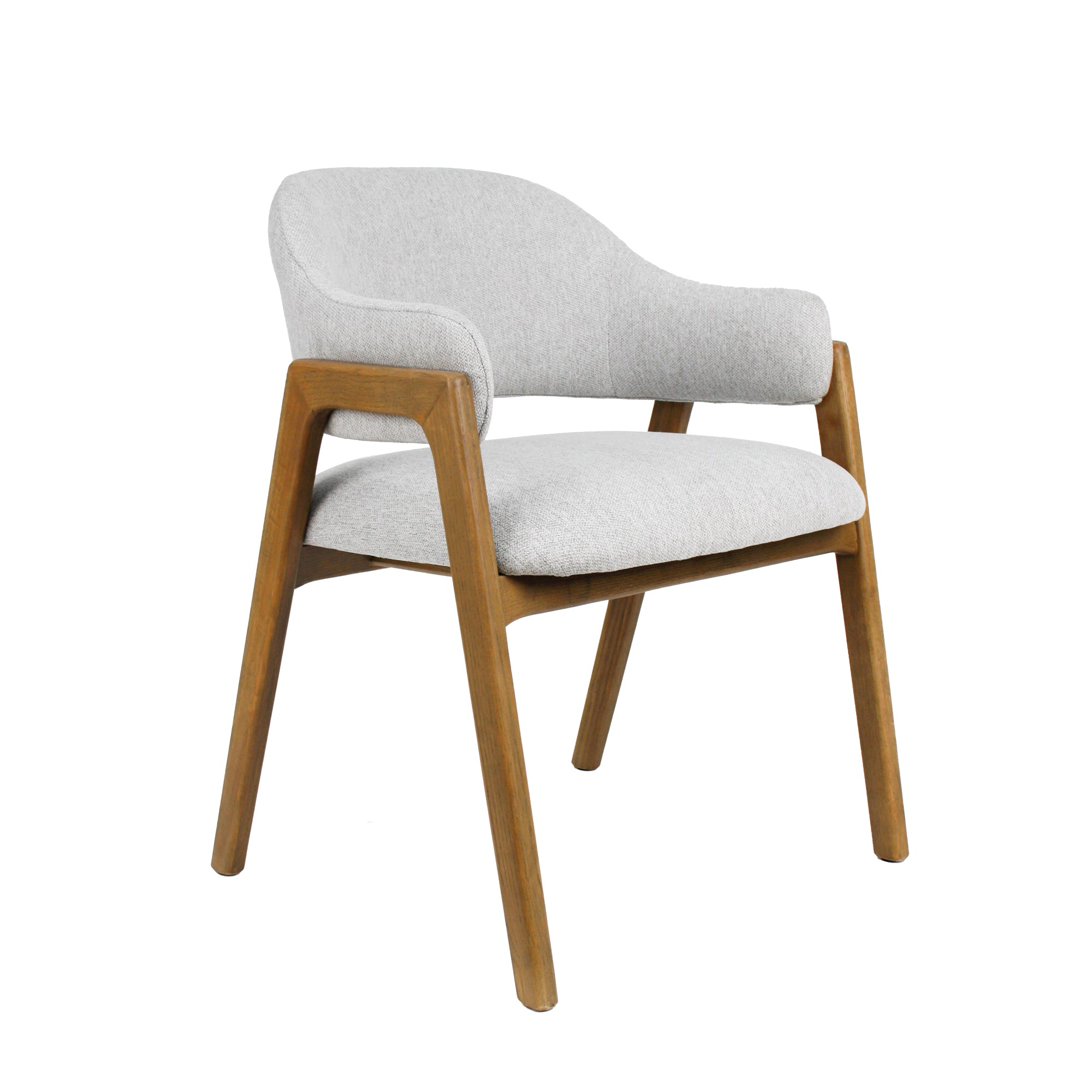 Introducing the Clara Dining Chair - the ultimate combination of comfort and style. With its soft, gray fabric and sturdy oak legs, this chair adds a touch of elegance to any dining room. The addition of arms provides extra support and ensures a comfortable dining experience. Elevate your dining space with Clara!