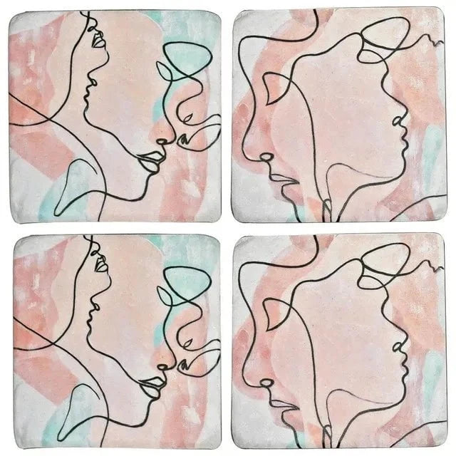 Coasters Abstract Face Resin Set/4