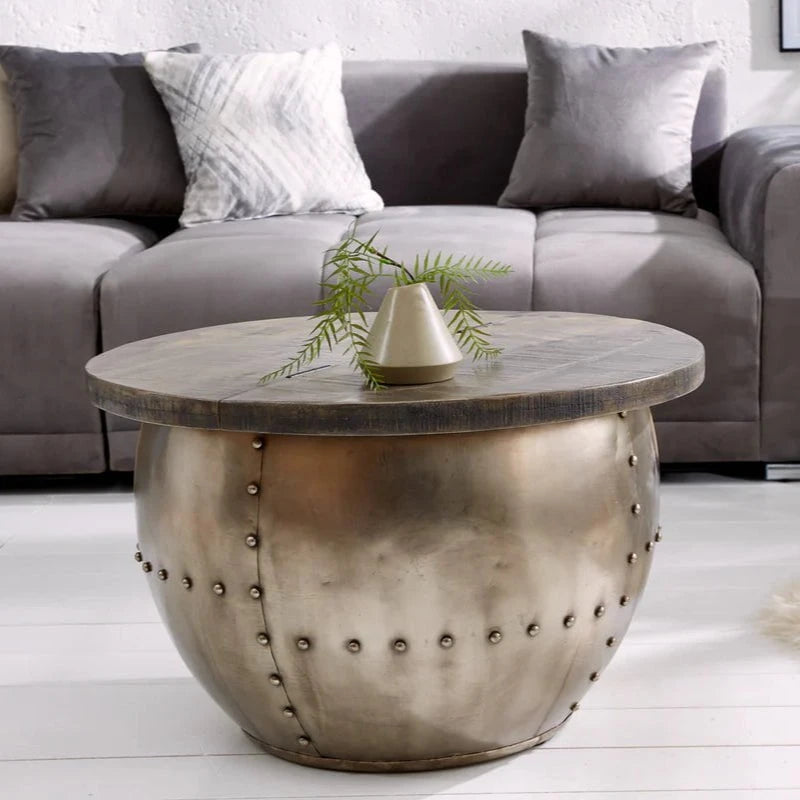 Celebrate the beauty of natural wood with this charming coffee table, designed to bring warmth and style to your home. Its rich wengue-colored top and rounded metal base combine rustic character with modern durability, making it a standout piece in any room.