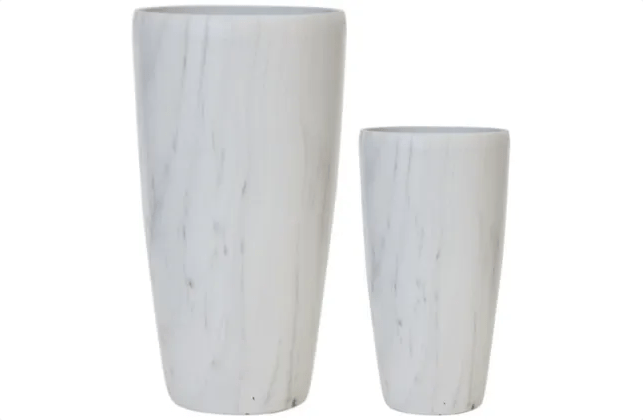 Elevate your indoor gardening with this set of 2 Cone Marble Resin Planters. Standing at 58CMH, these tall and elegant planters add a touch of sophistication to any space. Made with durable marble resin, they are perfect for both indoor use and showcasing your favorite plants.