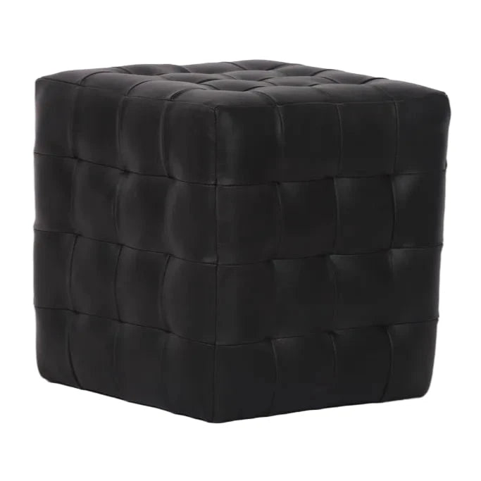 Introducing the Cube Tufted Leather Ottoman—a bold statement piece that commands attention. Crafted from genuine leather, this geometric powerhouse features distinctive tufted detailing that catches light and invites touch. The deep black finish pairs effortlessly with contemporary or eclectic interiors, while its compact cube silhouette maximizes functionality without compromise.