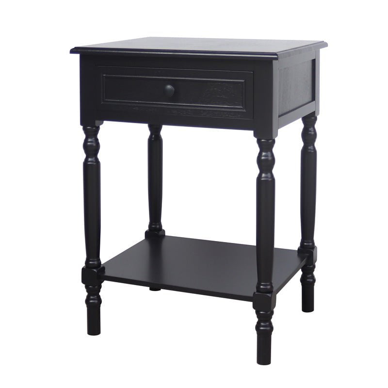 Elevate your bedroom with our Cyrus Accent Bedside Table. Crafted from sturdy pine and MDF, this sleek black table adds a touch of sophistication to any space. Keep your essentials within reach and elevate the style of your room with this versatile piece.