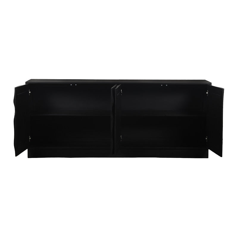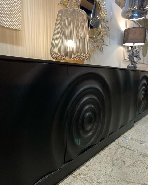 Our Drop in the Ocean 4 Door Sideboard boasts a timeless design in sturdy mango wood. With a black finish, it is the perfect accent piece to bring warmth and sophistication to any room. With four doors and plenty of storage space, this sideboard is the perfect blend of elegance and practicality.