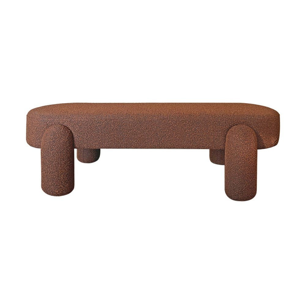 Introducing the modern masterpiece, Dundee Boucle Bench in luxurious Burnt Rust fabric. Its playful yet sophisticated design, complemented by rounded solid legs, adds charm and stability to any interior. A perfect accent piece for any room, this bench offers versatility and style for any decor.