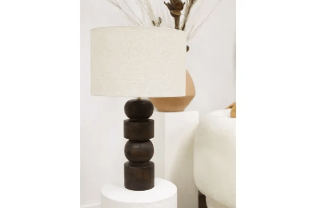 Illuminate your space with the elegant Durad Table Lamp. Crafted with a rich walnut finish and a flax shade, this 67cm wooden lamp adds warmth and style to any room. Bring a touch of sophistication to your decor with this timeless piece.