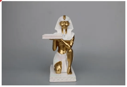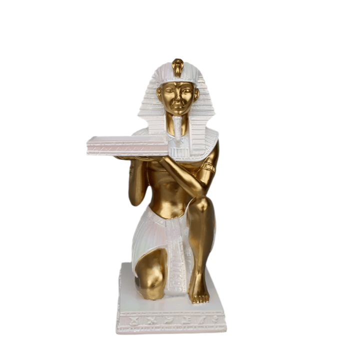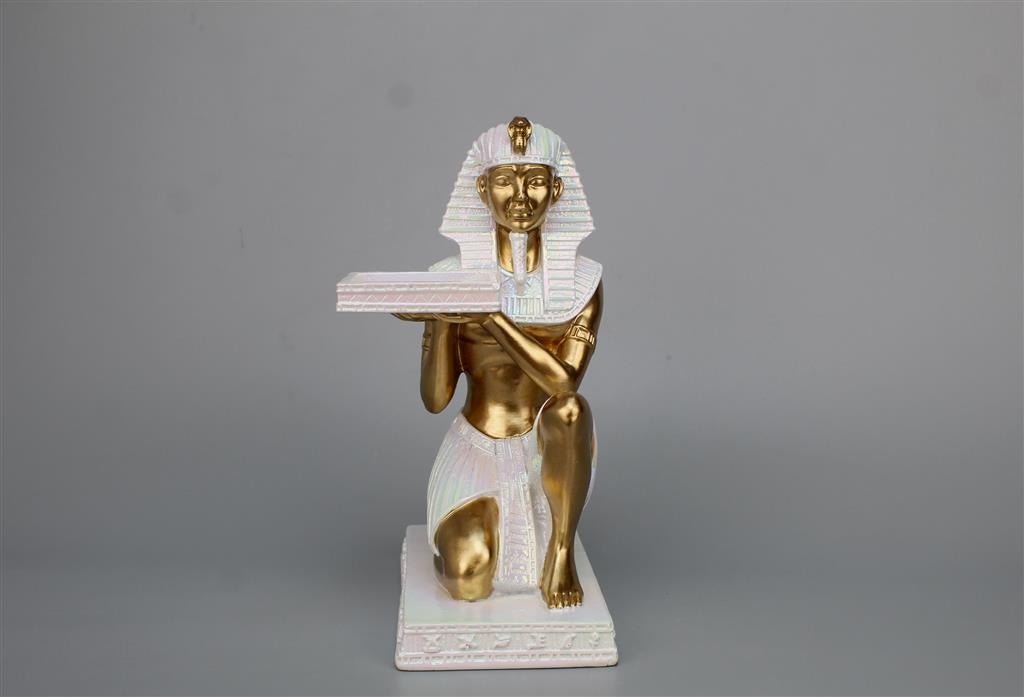 Indulge in the luxury of our 25CMH Egyptian figurine, delicately crafted and holding a beautiful plate. Adorn your home with this sophisticated piece, adding an elegant touch to any space. Embrace the artistry and elegance of ancient Egypt with this exquisite figurine.