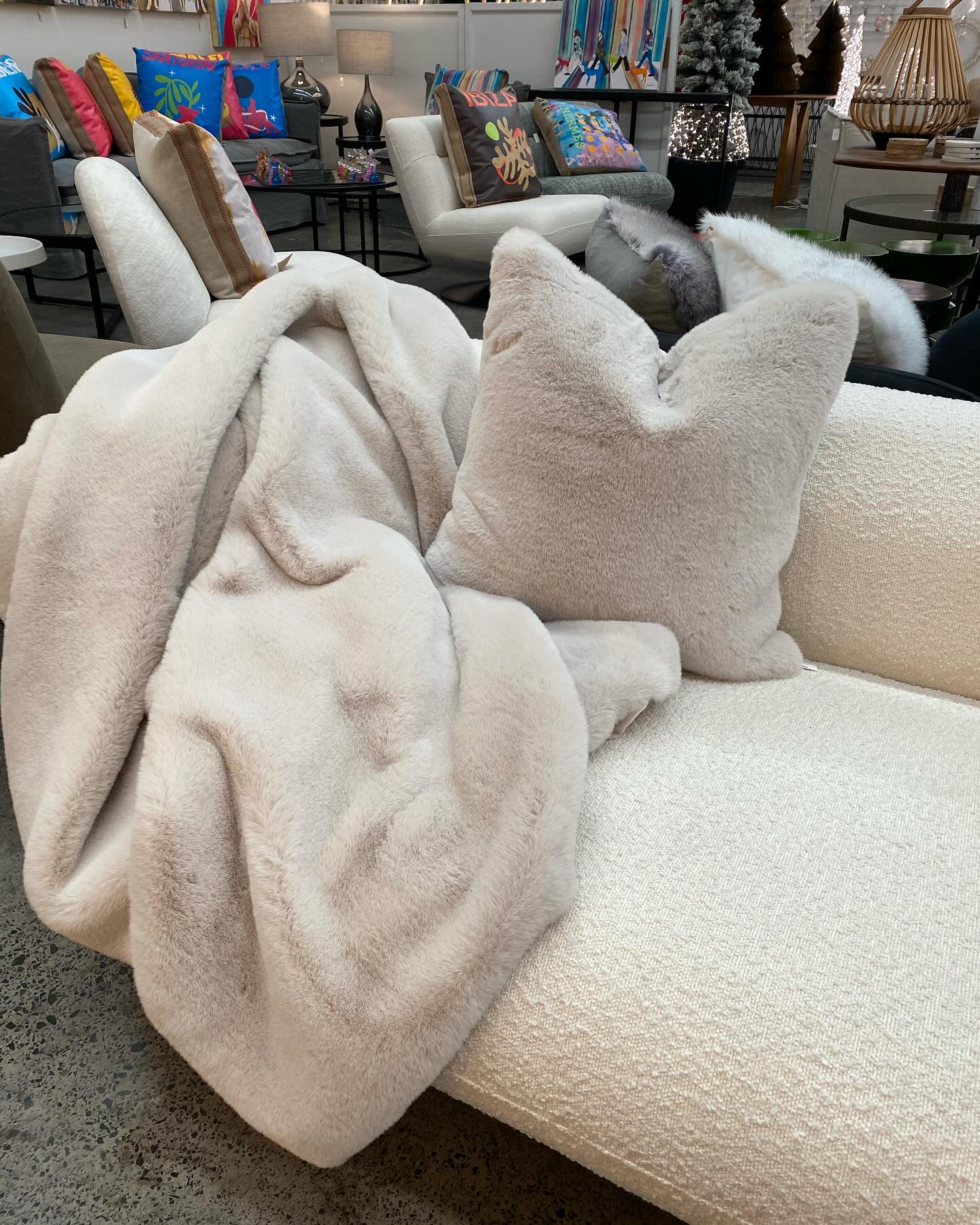 Enjoy the luxurious feel of our Faux Fur Throw in Pearl. Made with a blend of polyester and micro fiber for ultimate comfort. Perfect for cozying up on a chilly evening or adding a touch of elegance to your home decor. Indulge in the finer things with our Faux Fur Throw - Pearl.