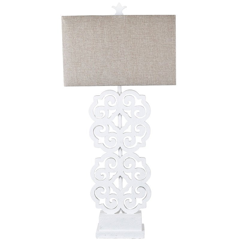 The Fleming Table Lamp is the perfect addition to your living space. Made of a durable resin material and a beige and white fabric shade, this lamp brings a classic look with modern appeal. The subtle beige and white tones add style and sophistication, while the sturdy construction ensures lasting enjoyment. With its timeless design, this lamp is sure to be a standout in any room.