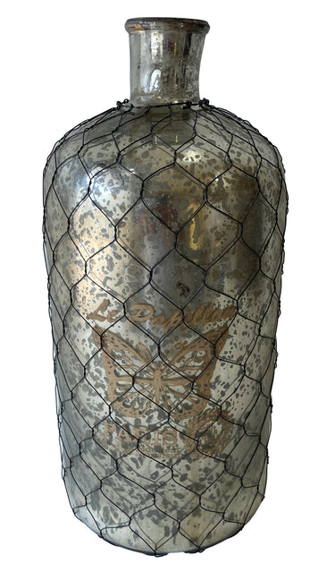 Indulge in the timeless elegance of the French Chateau Antique Bottle. Crafted with impeccable artistry, this rustic antique silver vase boasts intricate detailing and a breathtaking design that captures the grandeur of a bygone era. A true masterpiece that will elevate any space.