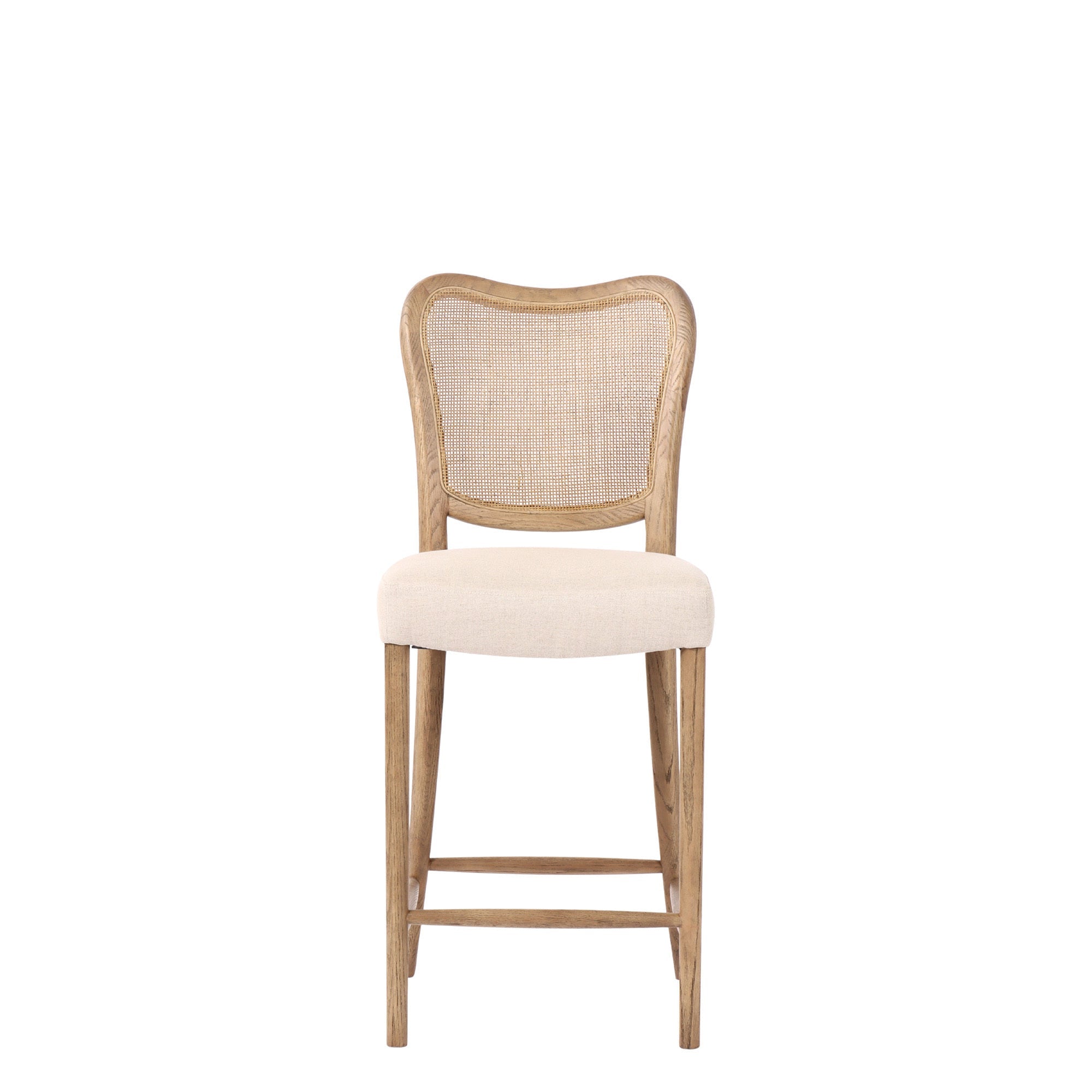 Bring a touch of French Provincial charm to your kitchen island or home bar with the Giverny Bar Stool. This piece strikes the perfect balance between rustic warmth and refined elegance. Upholstered in a breathable, high-quality Cream Linen fabric, it offers a soft and inviting seat that brightens your dining area.