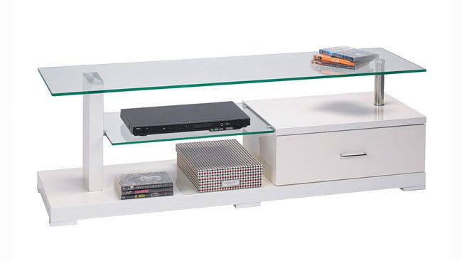 Stylish and functional, the Clare Glass Top TV Unit is a perfect addition to any living room. Crafted from high-quality materials, this sleek design features a tempered glass top and steel frame for a chic and contemporary feel. Enjoy all your favorite entertainment on this chic and functional TV unit!