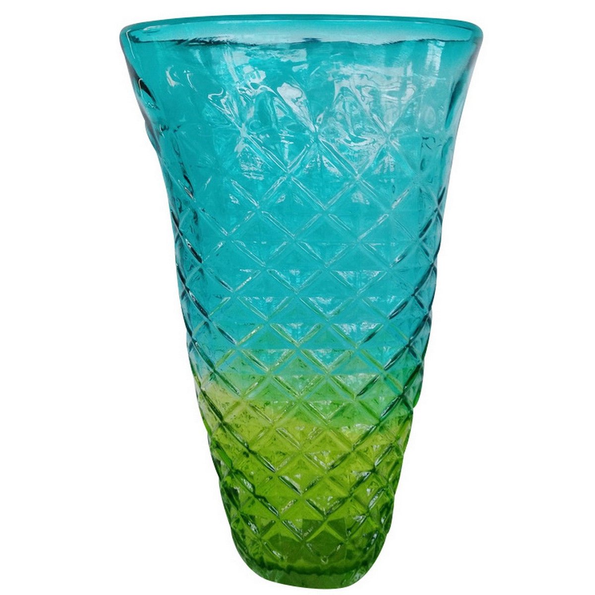 Elevate your home decor with this breathtaking Glass Vase in vibrant blue and green hues. Perfect for displaying your favorite flowers and adding a pop of color to any room. The handcrafted design and delicate details make it a must-have for any home.