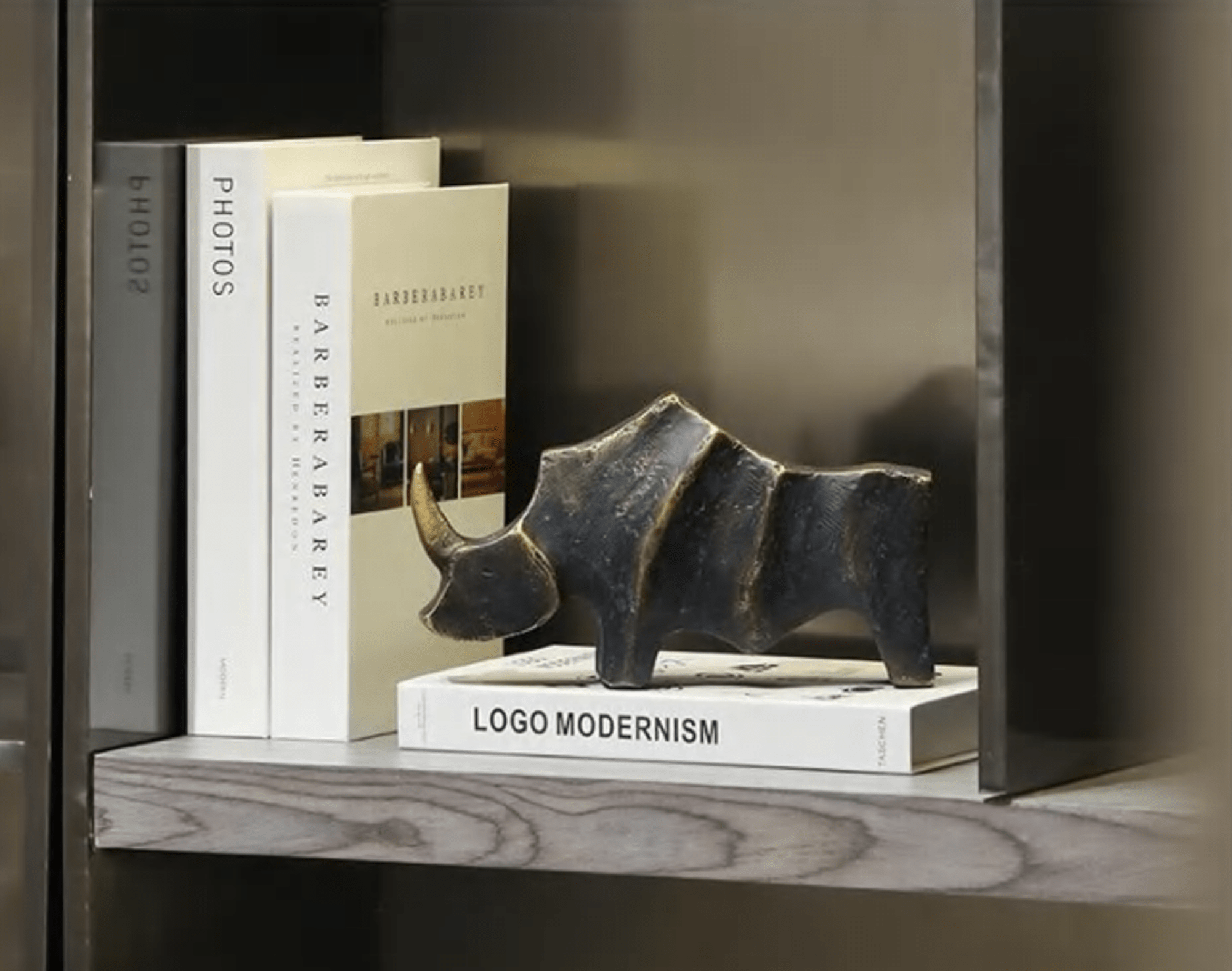 Introducing the Golden Horned Rhino - Small, a stunning addition to any home. Crafted with gold and bronze tones, this resin statue stands at H22.5X W6.5X L12.5cm, showcasing its intricate details. A symbol of strength and power, this piece will elevate your decor and make a statement.