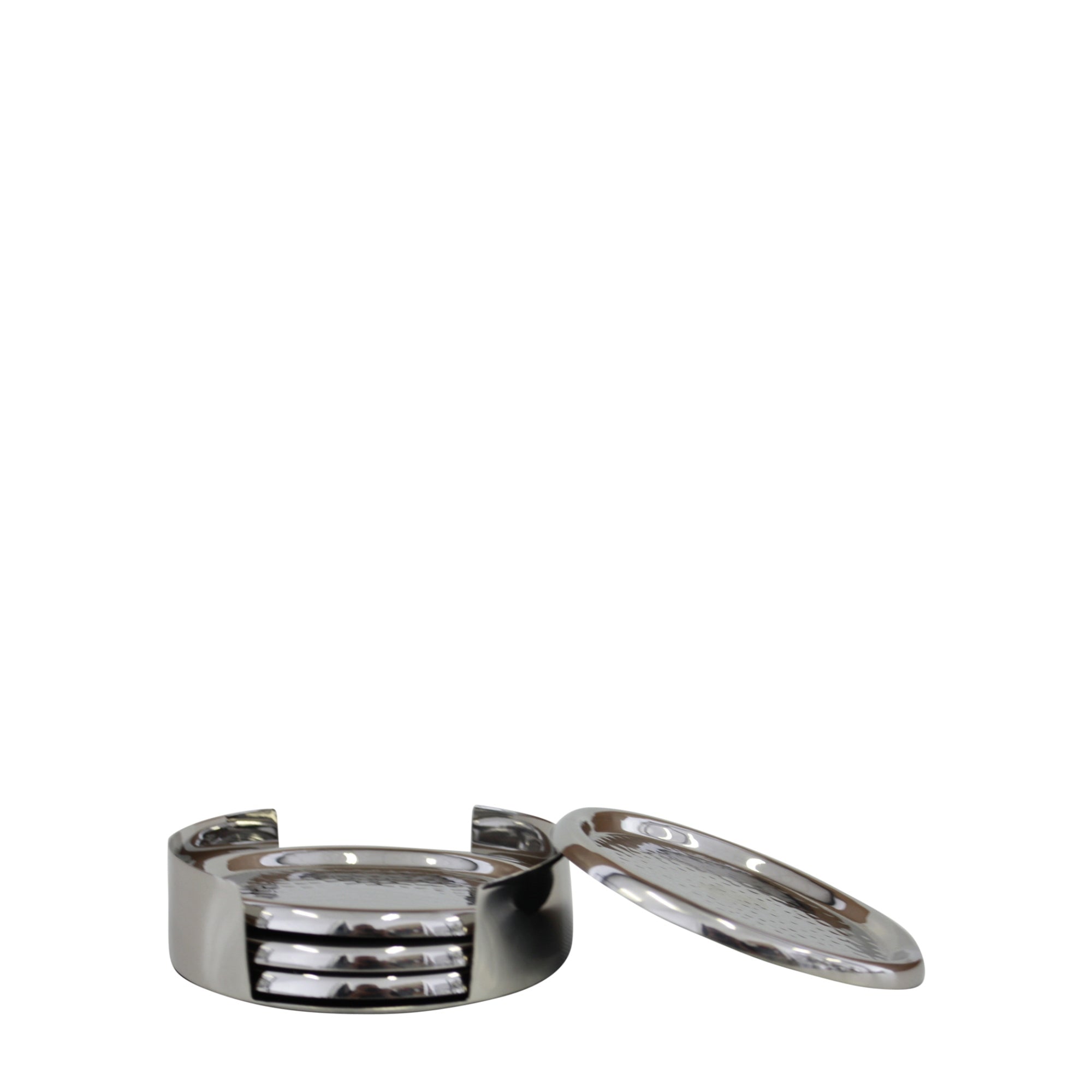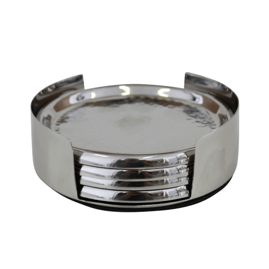 Hammered Coasters Set/4 In Holder Silver