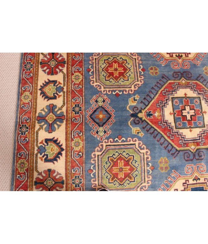 Ghazni rugs are traditional handwoven rugs from Afghanistan, named after the Ghazni region, which is renowned for producing high-quality wool. These rugs are a type of Afghan Kazak rug, known for their bold geometric patterns, rich colors, and exceptional craftsmanship.