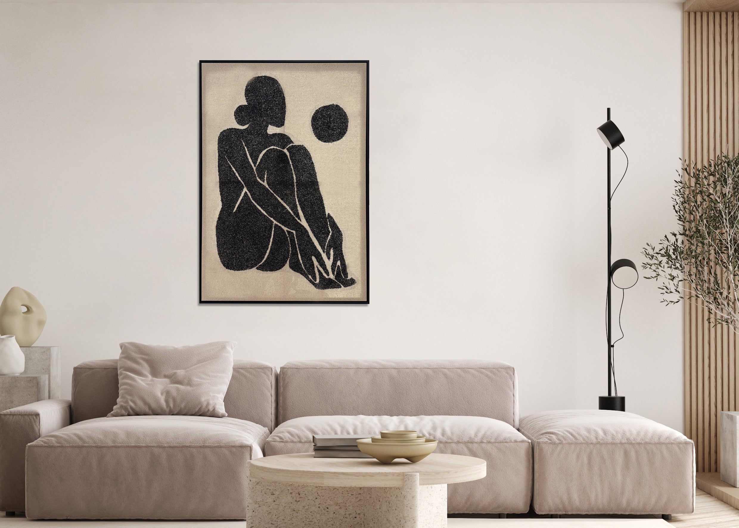 Black Nude Hand Painted Framed Canvas Wall Art