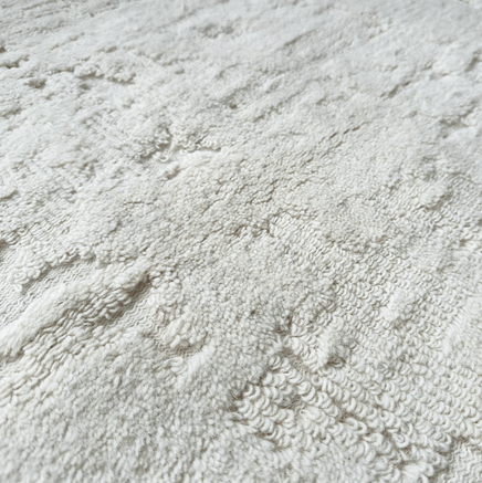 The Hobbiton rug is machine made from natural wool, combining a flat and raised pile. The natural wool colour keeps the rug simple and versatile.