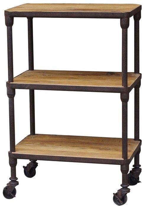 This Industrial 3 Tier Shelving Unit incorporates charm and functionality with its metal frame on casters, it would make a great feature in living rooms, entertainment areas, or office spaces.