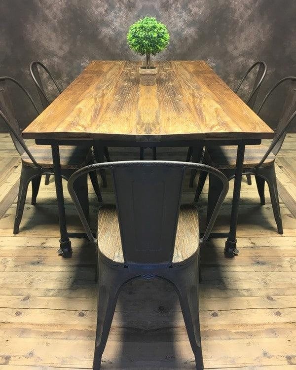 Industrial Dining Table with Metal Castors - 2300mm