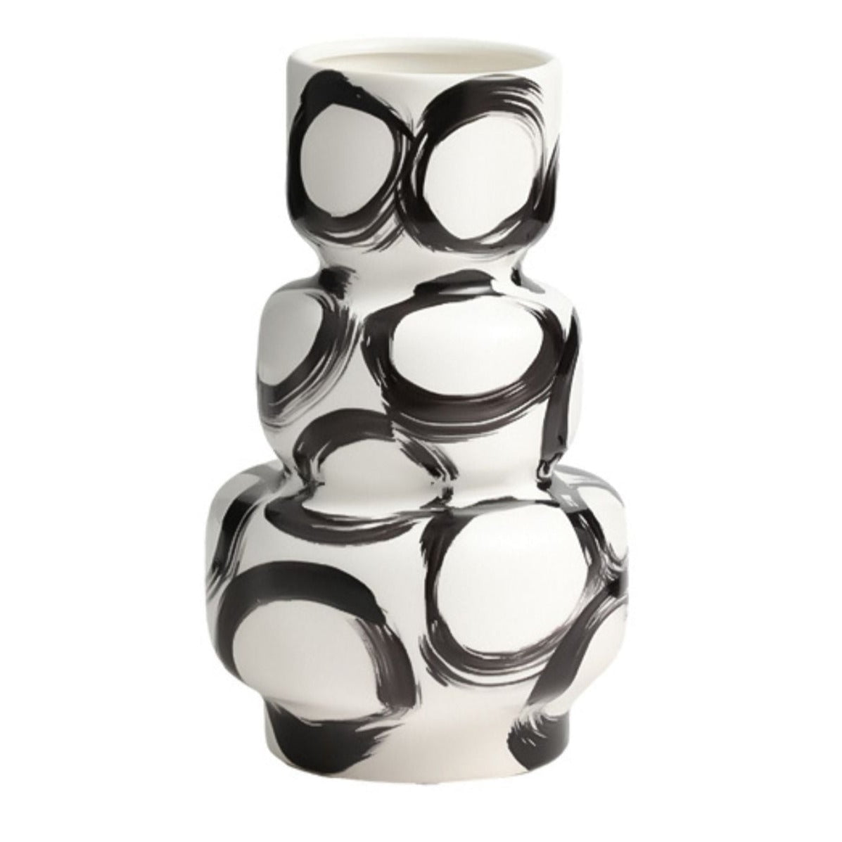 Introducing the Ink Circle Layered Vase - Large, a must-have for any home decor enthusiast. This stunning vase features intricate layers of inky circles, adding a touch of elegance and modernity to any space. Made with high-quality materials, this vase will be a durable and stylish addition to your collection.