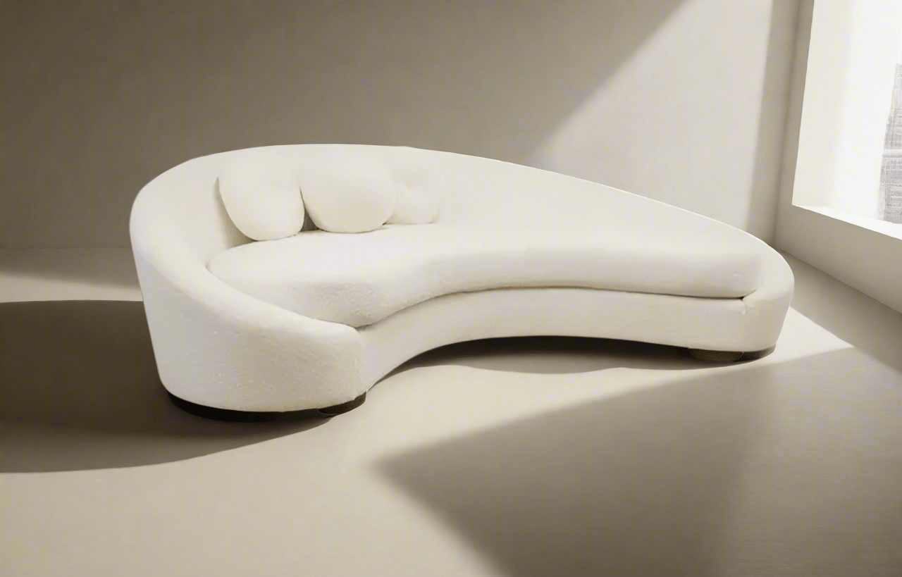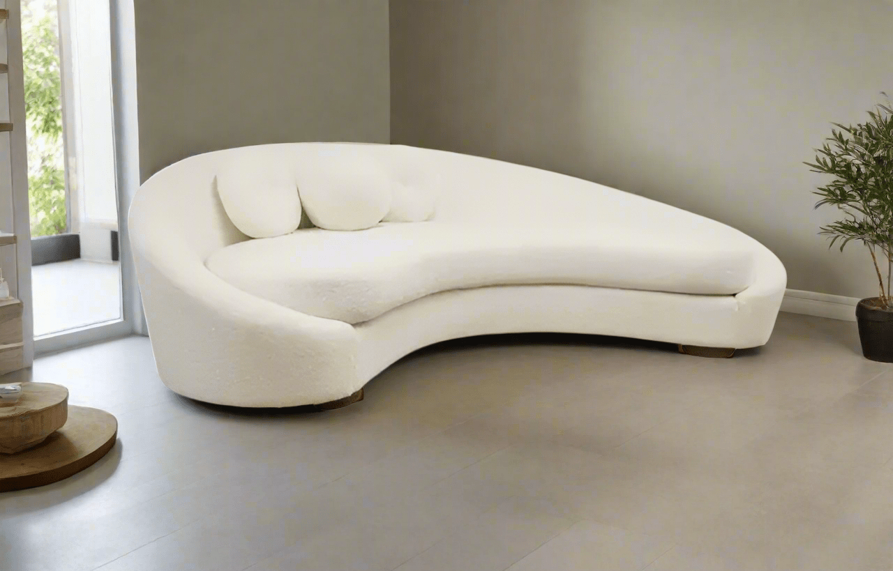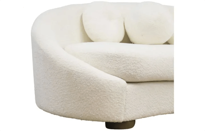 Indulge in the luxurious Isla Curved Boucle Sofa, crafted with premium white polyester boucle for a soft and elegant touch. The curved design adds a sophisticated feel to any room, making it the perfect statement piece for your home. Experience unparalleled comfort and style with the Isla sofa.