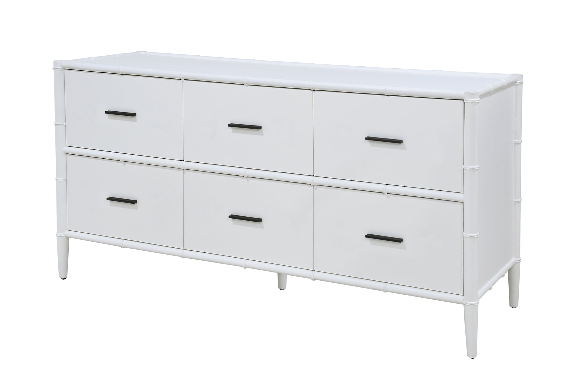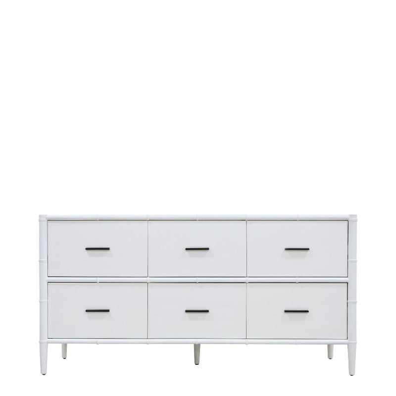 Elevate your bedroom with the Island Life 6 Drawer Dresser. Crafted with premium mango wood and plywood, this luxurious dresser boasts a clean white finish that adds a touch of sophistication to any space. With six spacious drawers, it offers ample storage for your everyday essentials. Take your interior design to the next level with this elegant and exclusive piece.