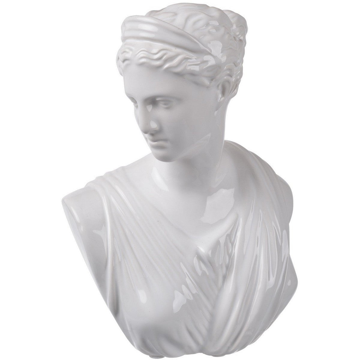 Celebrate classic beauty with the Jolie Bust Statue - Medium. Crafted from smooth ceramic with a glossy white glaze, this medium-size bust will be a stunning centerpiece for your minimalist, contemporary, or traditional decor. Luxurious and inspiring, this piece is sure to take your interior decoration to the next level!