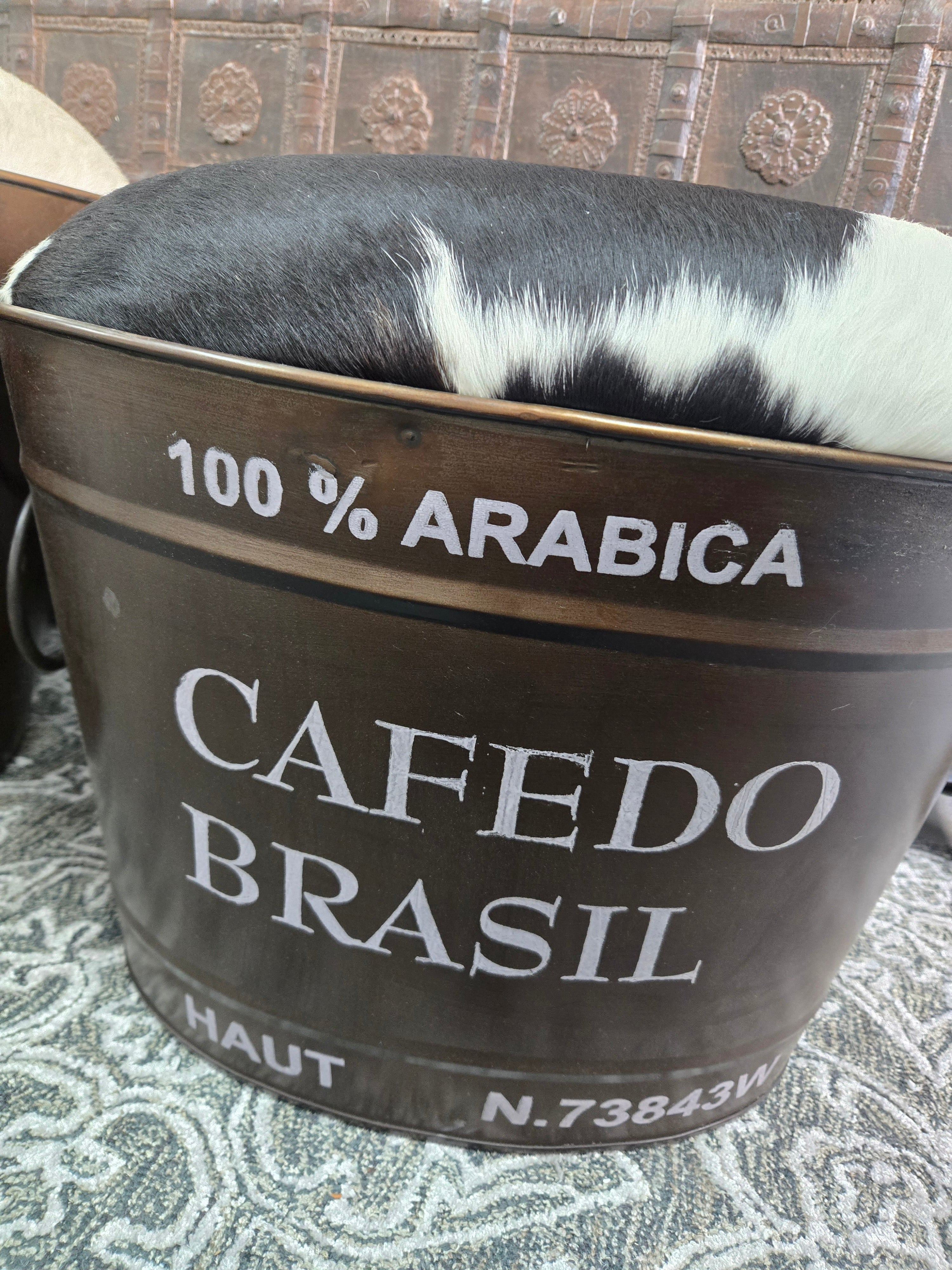 Elevate your space with this distinctive Goat Hide and Metal Stool Set, where rustic charm meets practical design. Handcrafted in India, this nesting duo features striking Black & White Goat Hide tops complemented by durable Brown Metal frames.