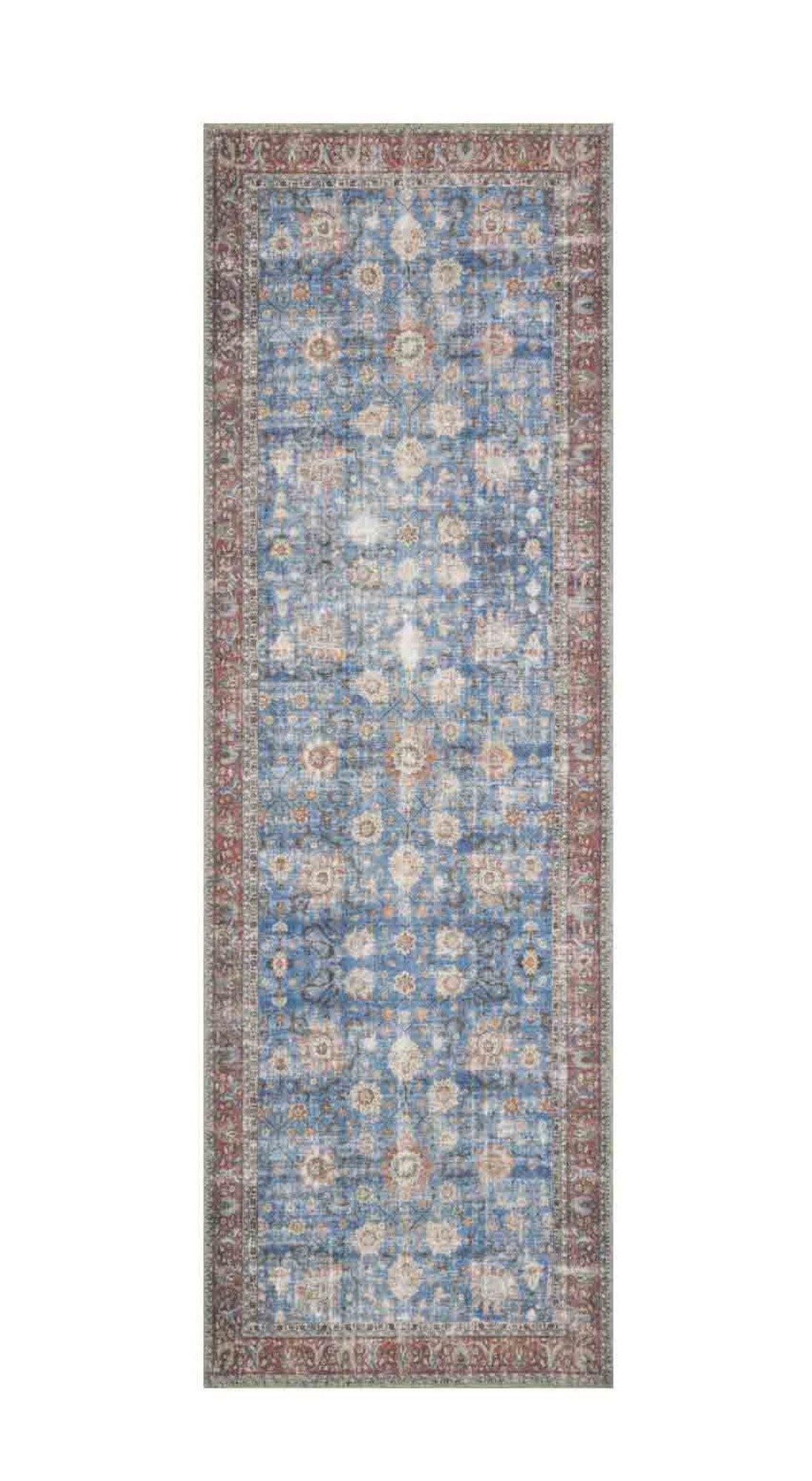 Elevate any space with the timeless and classic Loren Runner in Blue Brick. Featuring vintage hand-knotted looks at an affordable price, this rug collection is created in Turkey using advanced technology for a textured effect. Power loomed with 100% polyester, each design portrays every individual knot on a soft base.