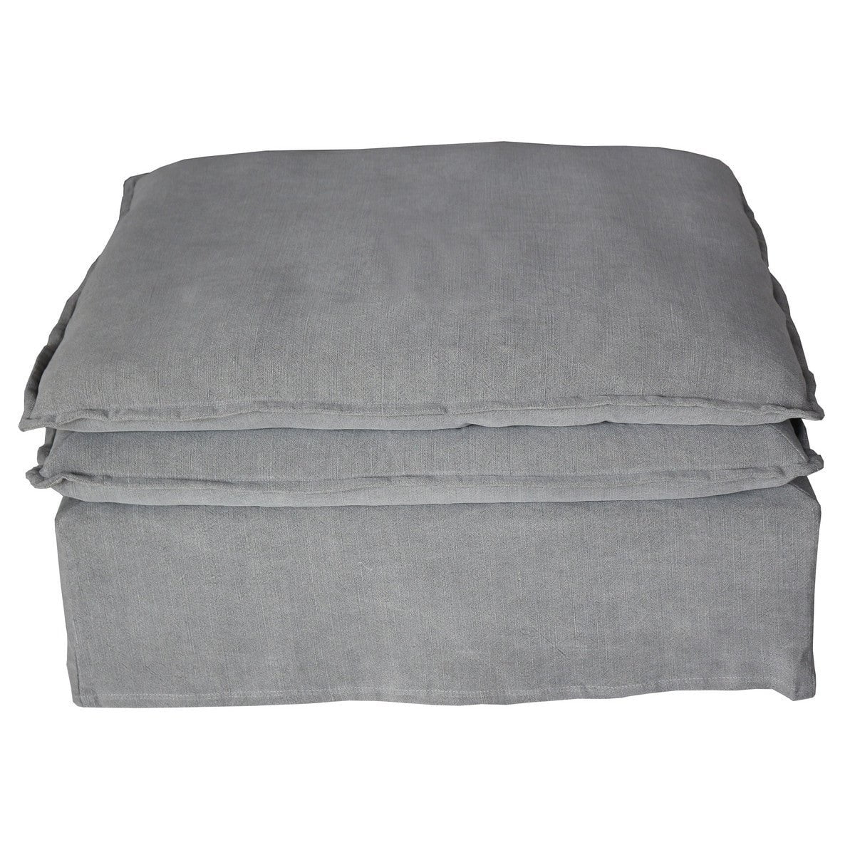 The Malta Double Cushion Sectional Ottoman offers a sophisticated and timeless look to any living space. Constructed with a timber framing and luxurious feather foam fill, this piece combines artful design with superior comfort. Upholstered in fine linen, its luxury look is supported by a durable dry clean-only slipcover.