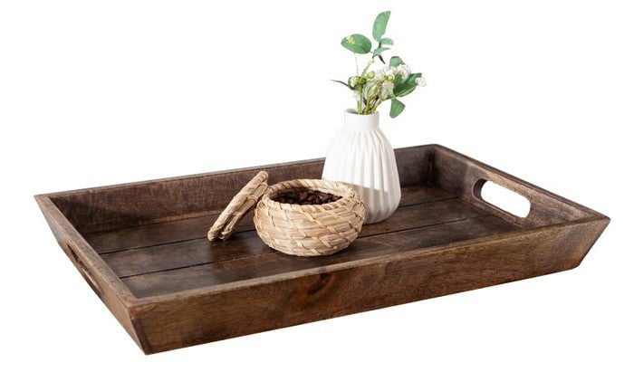This durable mango wood tray is both stylish and practical with raised edges and handles that ensure a secure grip. This serving tray has a timeless look with a beautiful finish.