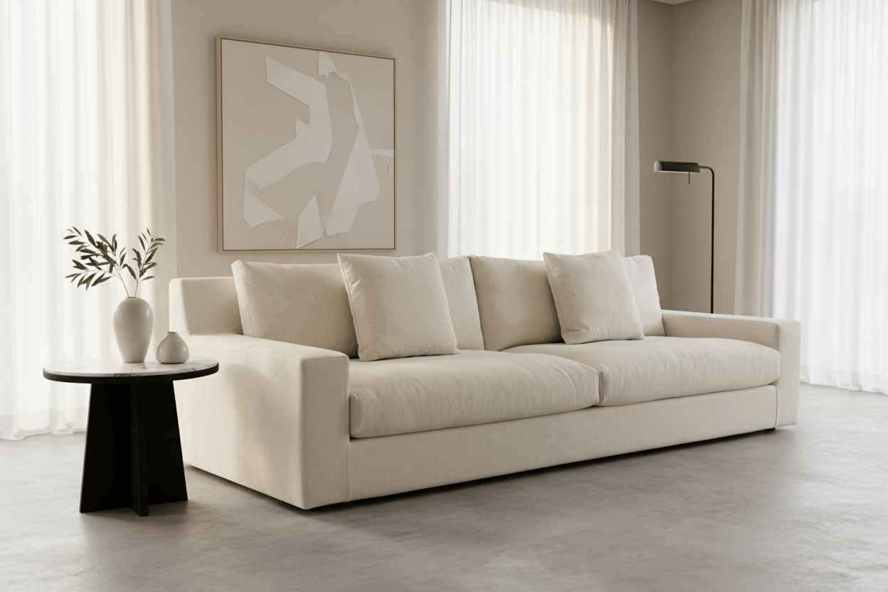 Expansive 4-Seater Proportions: A rare, oversized silhouette that provides ample seating, perfect for large open-plan living areas and social households.