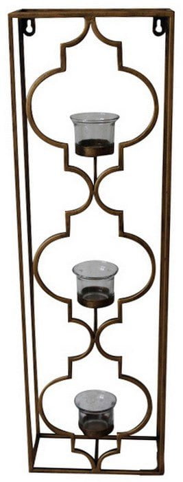 This 3 glass tealight holder is placed in an antique brass frame