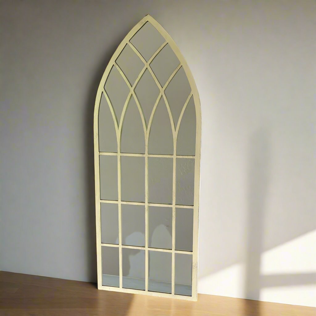 Add a touch of vintage charm to your living space with our Metal Mirror Indoor/Outdoor. Its antique white color and sturdy metal and mirror material make it a durable and stylish addition to any room or outdoor space. Perfect for reflecting natural light and creating a cozy atmosphere.