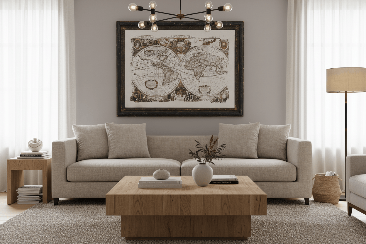 Take your wall art to the next level with our vintage-style world map! Against a mirrored background, this stunning piece adds depth and dynamic appeal to any room. With a ready-to-hang dark frame and subtle distressed finish measuring 1060mm, it's the perfect addition to any contemporary space.