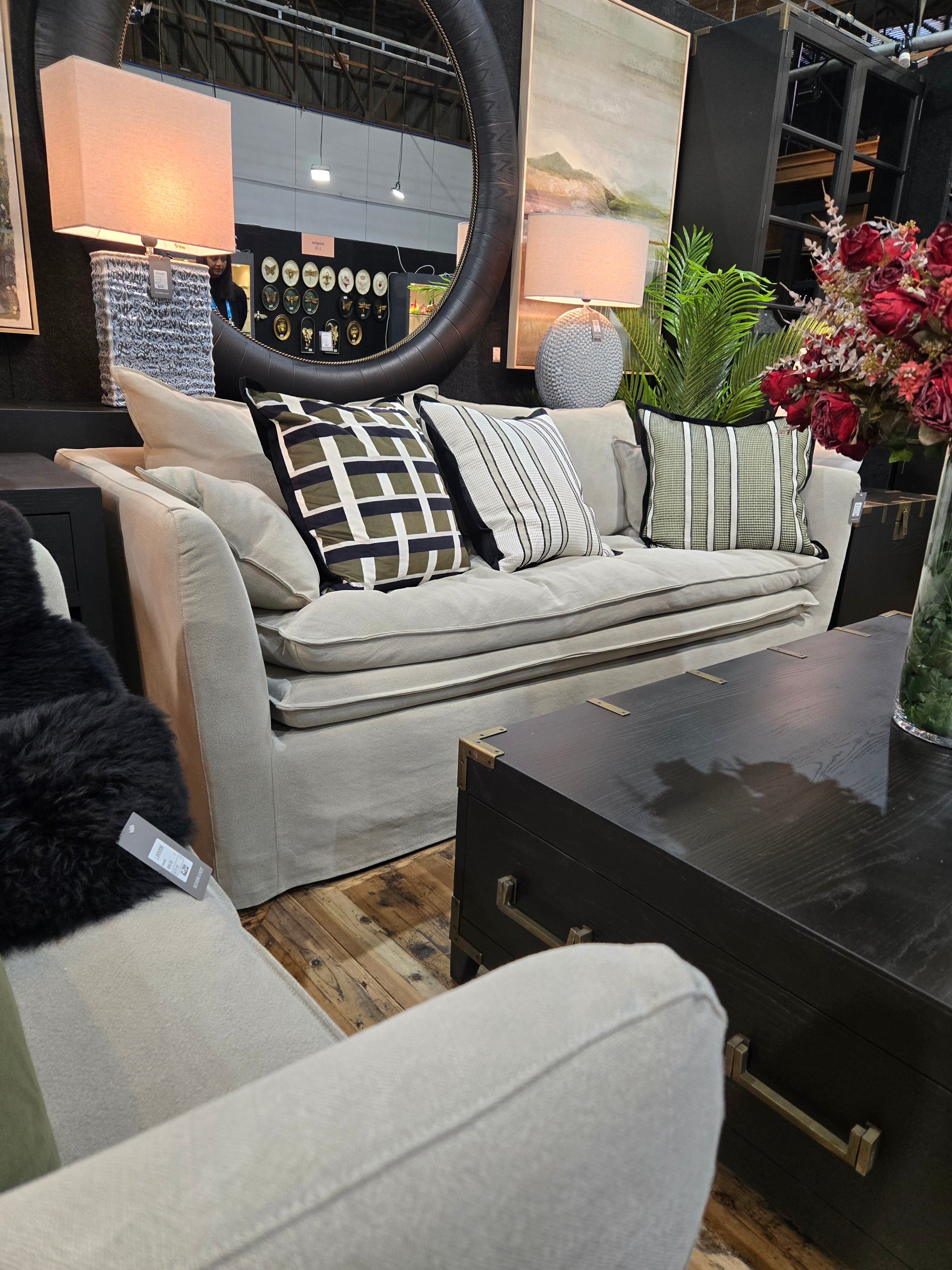 Composition: Upholstery : Linen / Cotton Mix, Cushions : 100% Feather Filled