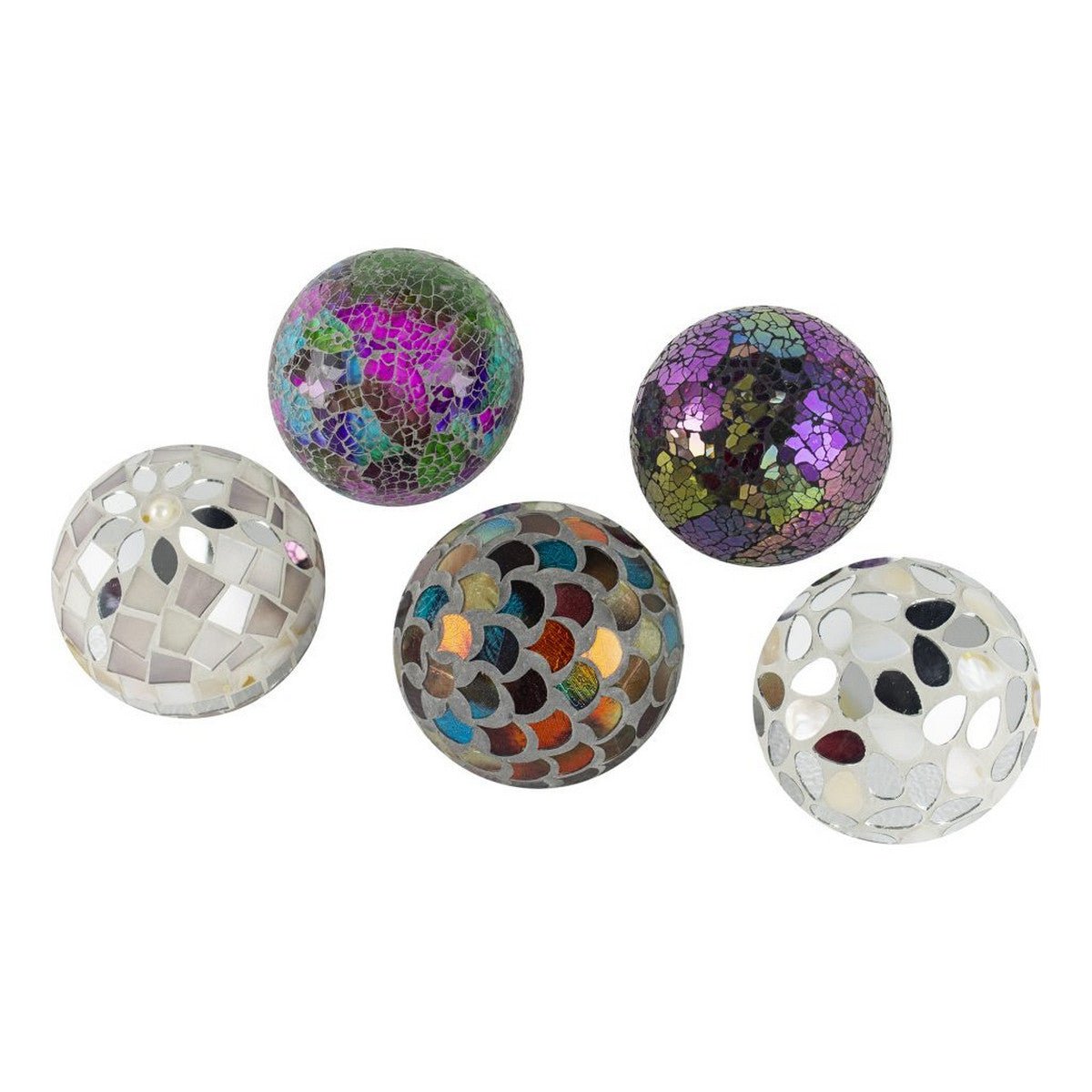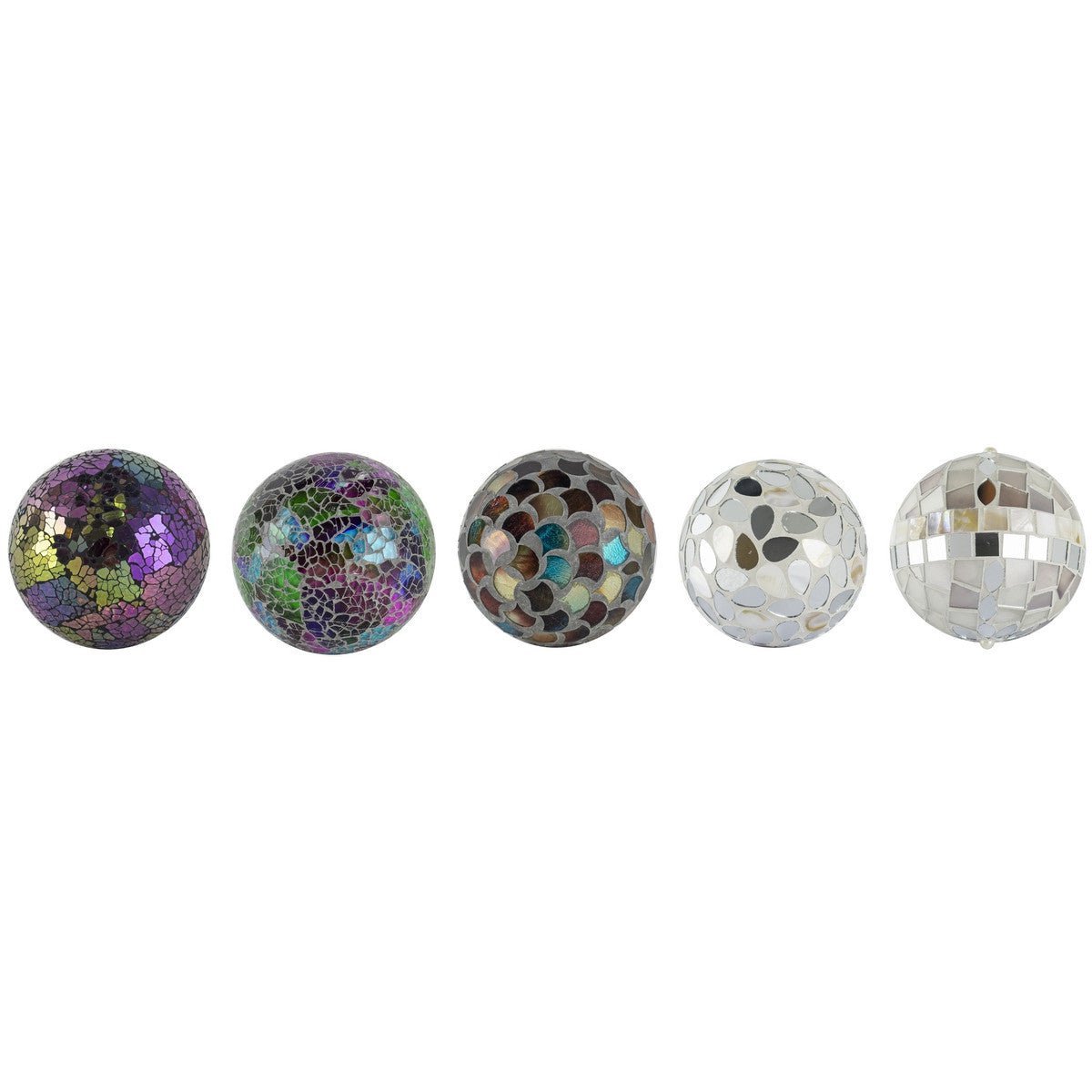 Elevate your home decor with the stunning Abbot Mosaic Deco Balls set of five. These beautiful orbs, featuring assorted glass and mirror mosaics, add a touch of elegance to any space. Scatter them around the room or display them together in a bowl for a modern centerpiece.