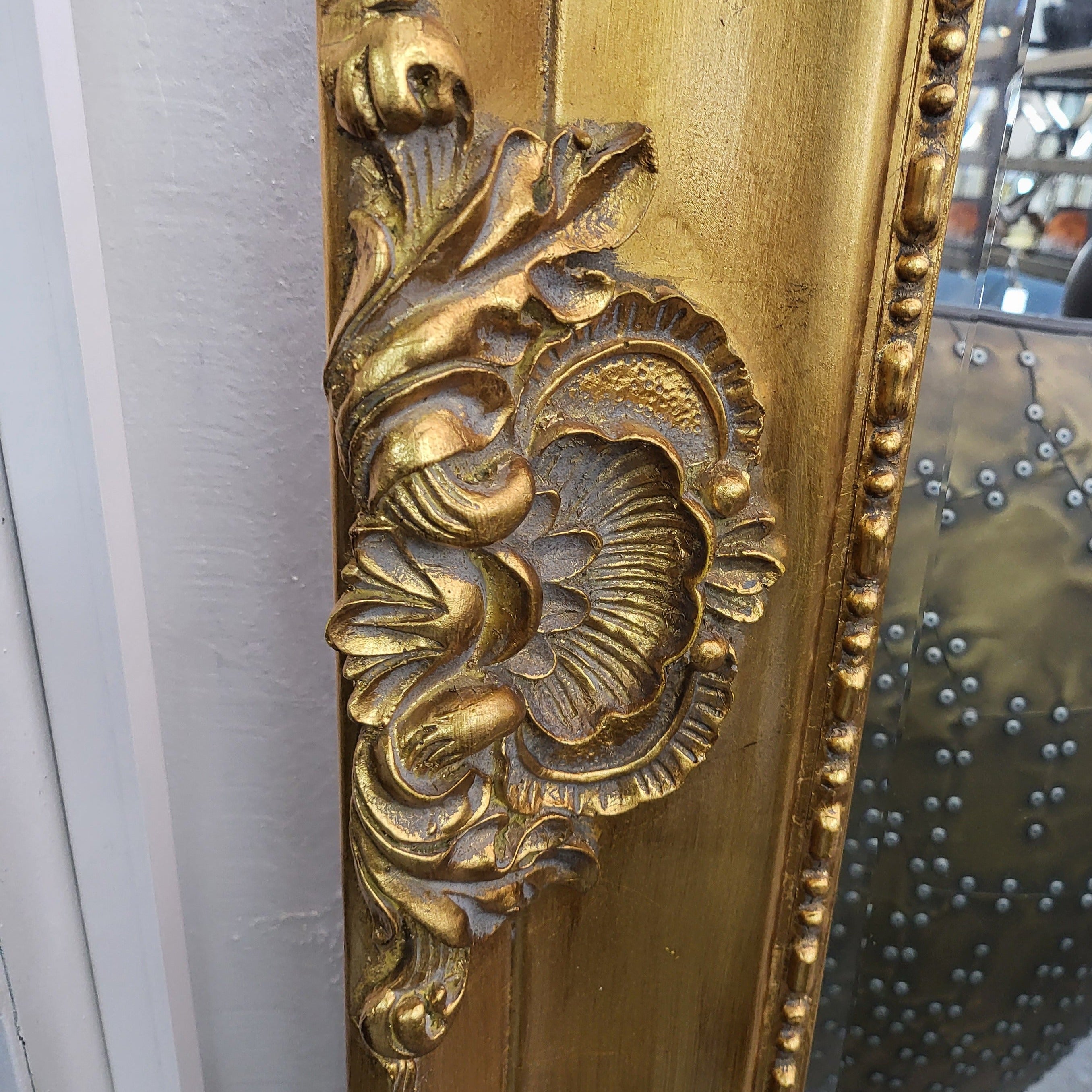 Designed to rest comfortably on the floor against the wall or hanging on the wall, this mirror is a bevel edged mirror, set inside a mahogany frame and adorned with intricate and detailed handcrafted carvings which is set off by the beautiful Gold lacquer finish.