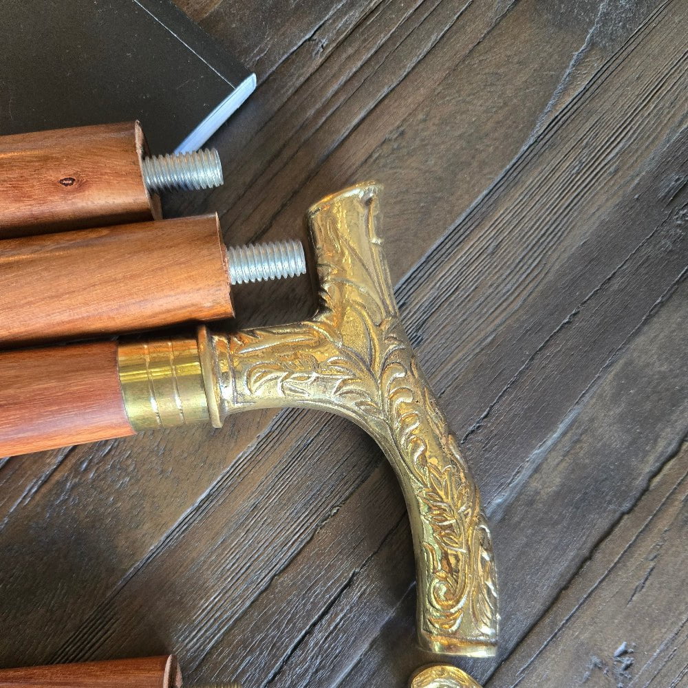 Crafted with timeless elegance, this walking stick combines the strength of solid wood with the charm of a beautifully detailed brass handle. Designed for both style and practicality, it features a sturdy construction that dismantles into three compact sections—making it easy to carry and reassemble by hand, no tools required.