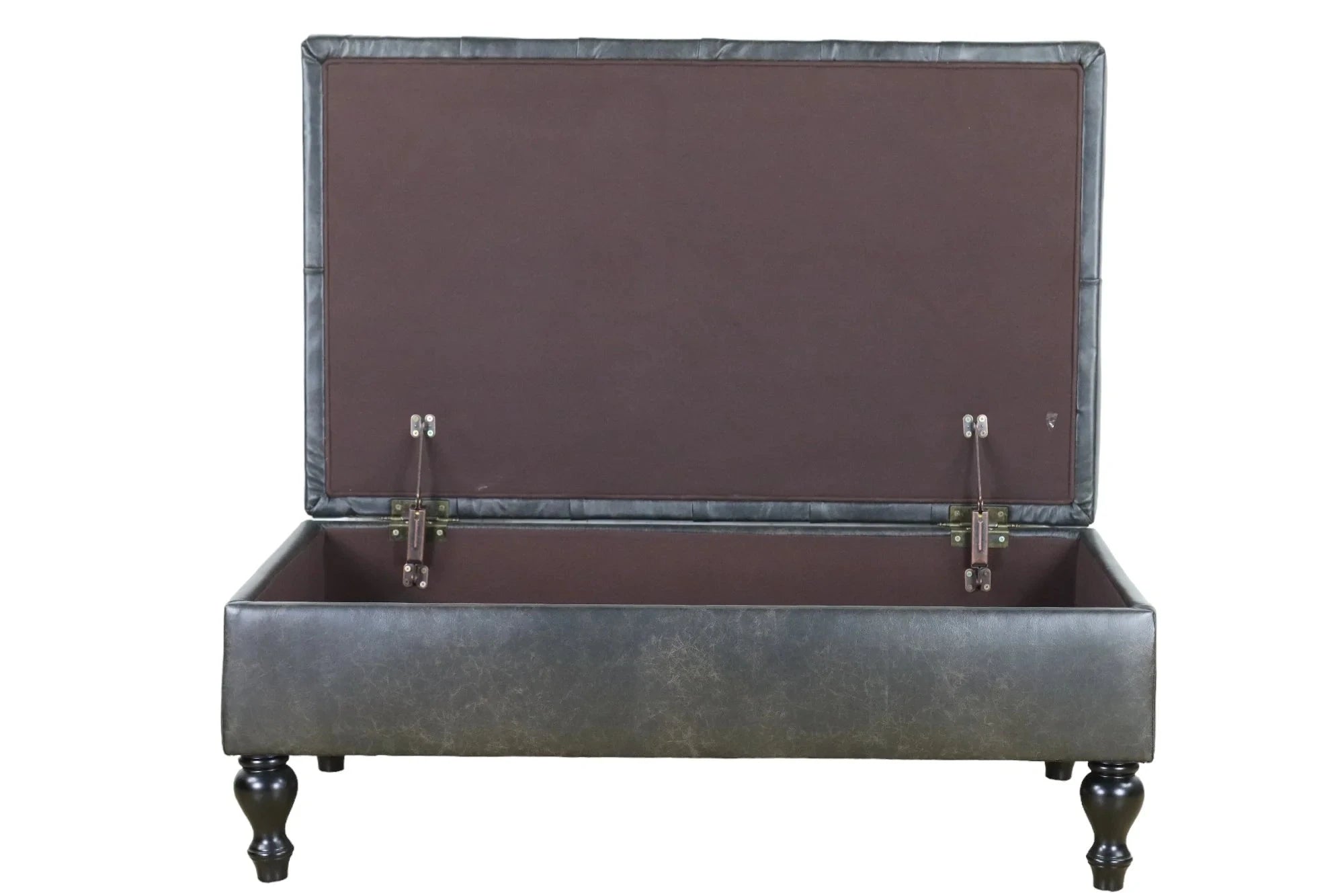 Transform your living space into a clutter-free oasis with our Ottoman with Storage in chic black. This multi-functional piece not only adds style to your room, but also provides ample storage for blankets, pillows, and other items. Say goodbye to clutter and hello to a sleek and organized living space!