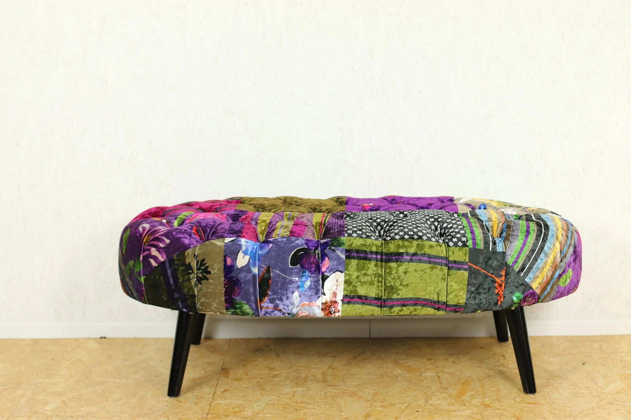 Elevate your space with our Oval Patchwork Ottoman. This stunning piece combines unique patterns and textures to create a one-of-a-kind statement. Perfect for adding a touch of personality to any room, our ottoman adds both style and function with its comfortable seating and storage capabilities. Bring your home to life with our Oval Patchwork Ottoman.
