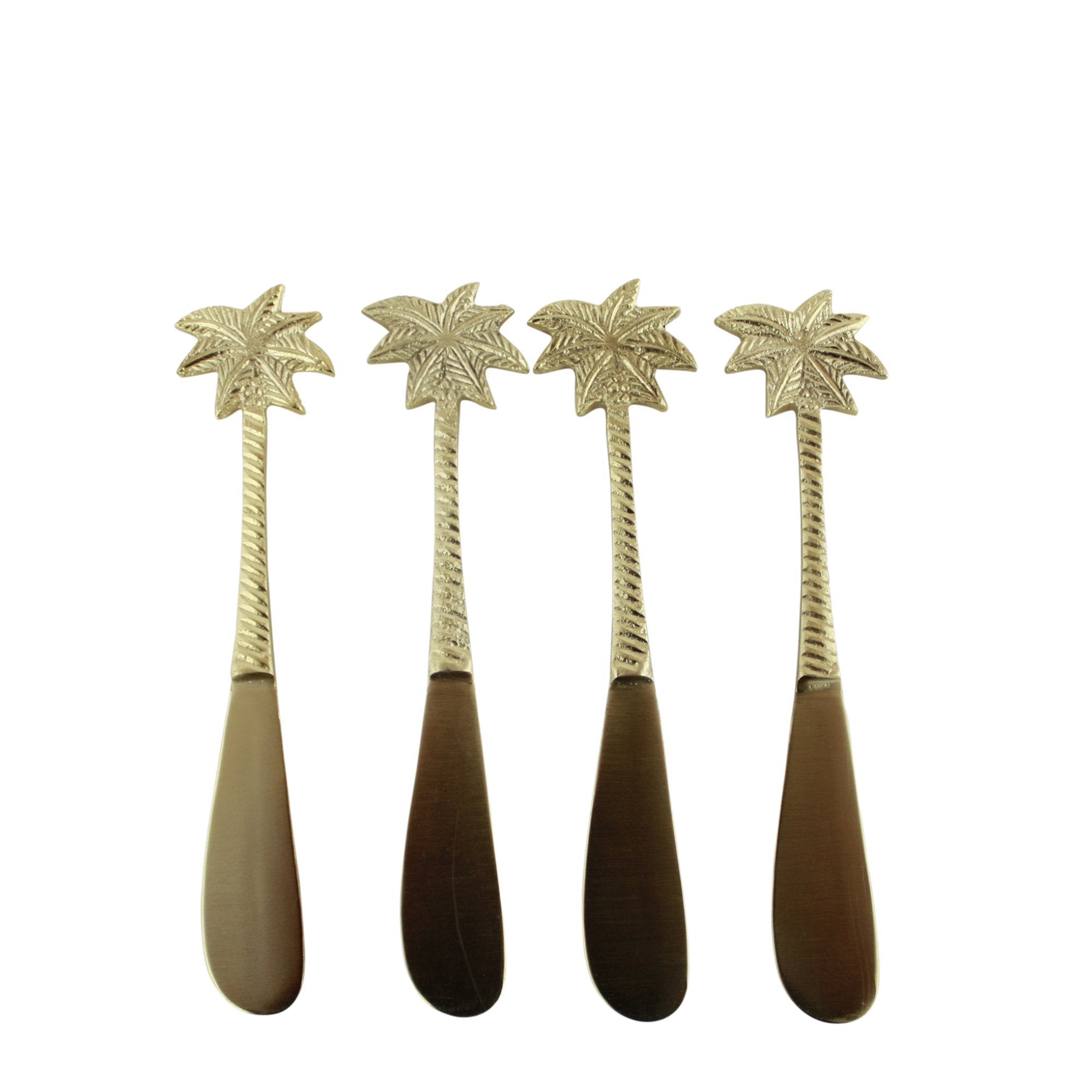 Add a touch of luxury to your next gathering with our Palm Tree Spreaders Set. Expertly crafted from steel and brass, these exquisite spreaders feature a whimsical palm tree design in a beautiful gold finish. Designed for both function and style, these spreaders are perfect for entertaining and adding a sophisticated flair to any hors d'oeuvres or cheese platter. Elevate your hosting game with these exclusive spreaders.